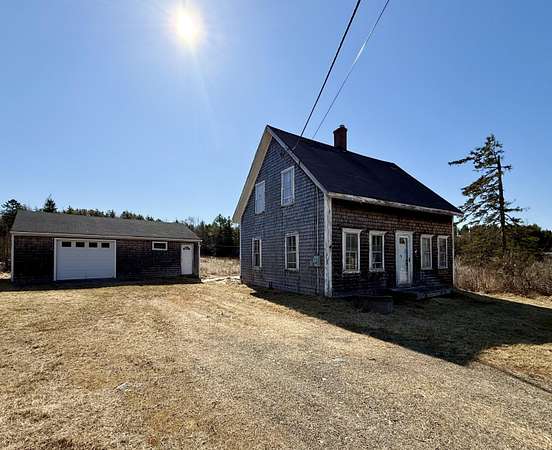 Nestled on a tranquil 9 plus acres, this country farmhouse is located in an idyllic Maine setting surrounded by serene fields and tranquil woods. If your vibe is country living, or if you are thinking of homesteading.... Look no further. A great opportunity lies in Edmunds Township. This property offers a rare opportunity for those with a vision. The expansive land offers ample space for gardens, outdoor activities, or even additional structures, all while being enveloped in natural beauty. Although it has not been lived in for some time and currently stands in need of significant renovation, this home offers a blank canvas brimming with potential. Additionally, the property features a one-car garage with lots of storage & another garage next to that. Use this property to house your at home business...utilizing the two garage structures.Or drop your small home on the acreage and take advantage of the existing well and septic system. Property is to be sold as is condition.