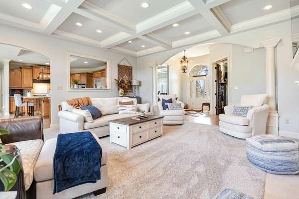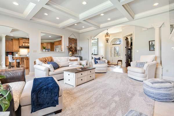 Luxury Living at its Finest in Laurel Canyon! Perched at the peak of London's prestigious Laurel Canyon subdivision, this breathtaking brick ranch offers sweeping 360-degree views and an unmatched lifestyle of comfort, elegance, and entertaining. Step inside to discover ornate ceilings, exquisite trim work, and custom craftsmanship throughout. The main-level owner's suite is a retreat of its own " featuring a spacious bedroom with specialty ceilings, a luxury spa bath with a whirlpool tub, double tiled shower, dual vanities, and an expansive walk-in closet. The open, split-bedroom floor plan flows seamlessly from the gourmet kitchen " complete with an oversized island, stainless steel appliances including double ovens, and a commercial-size refrigerator/freezer " into the formal dining area and inviting living room, perfect for gatherings large or small. A dedicated home office, laundry room, and three-car garage add to the thoughtful design. The finished walkout basement is practically a home of its own, offering a second kitchen, six bedrooms, fitness and recreation rooms, and a spacious family area that opens to the expansive patio. Step outside to your private oasis with a saltwater in-ground pool, fire pit, and pergola the perfect setting for relaxation or entertaining. With three-zone HVAC, abundant storage, and top-tier finishes inside and out, this home captures the essence of luxurious living with a gracious feel. *14 Month Home Warranty Included by the sellers! * Schedule your showing now, as interest rates have dropped, this will move quickly!