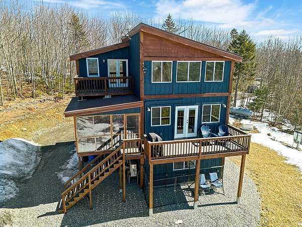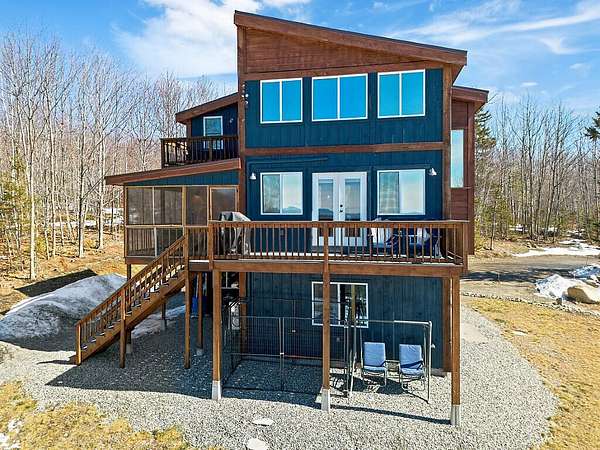 Set on 2.84 acres in New Sharon, this beautifully crafted custom home offers breathtaking mountain views--including Mount Washington on a clear day--and thoughtful design throughout. A dramatic wall of windows fills the open-concept living space with natural light while perfectly framing the sweeping landscape beyond. The home features 2 bedrooms and 2 stunning bathrooms, with flexible spaces designed to adapt to your needs. The second bedroom can easily serve as a home office or formal dining room, while the entire third floor is dedicated to the primary suite, complete with a walk-in closet and bonus space ideal for a nursery, office, or additional dressing area. Enjoy the scenery from multiple outdoor living spaces including two levels of decks and a screened-in porch perfect for dining while taking in the views. Inside, the home offers a welcoming mudroom entry with laundry, a convenient laundry chute connecting all floors, and smart window placement that complements the home's efficient heating design. The attached garage adds everyday convenience, and the generous lot leaves plenty of room to build a detached garage if desired. With potential to enclose the screened porch or finish the space beneath it to create a third bedroom, this nearly new home offers exceptional flexibility along with its stunning setting--making it a rare opportunity to enjoy modern comfort surrounded by Maine's natural beauty.