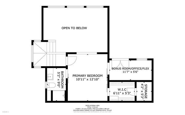 - Bathroom x 2, Bedroom x 2, Bonus Room, Laundry Room