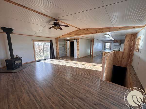 Completely remodeled and thoughtfully finished, this 4-bedroom, 3-bath home sits on 31.55 acres at the quiet end of the road where pavement meets gravel-approximately 18 miles south of Baker, MT. Inside, generous living spaces are anchored by a wood-burning fireplace and a stunning kitchen featuring a massive 12' island, perfect for gathering and entertaining. Locally milled pine from Ekalaka adds authentic character, blending rustic cabin warmth with today's modern luxury. All new, contemporary light fixtures elevate the space throughout. Two sliding glass doors offer ideal access for a future deck and outdoor living. A 36' x 60' shop provides ample room for storage, projects, or equipment. The property is serviced by a reliable Fox Hills well and built with durability in mind, making this truly a country gem designed to last.