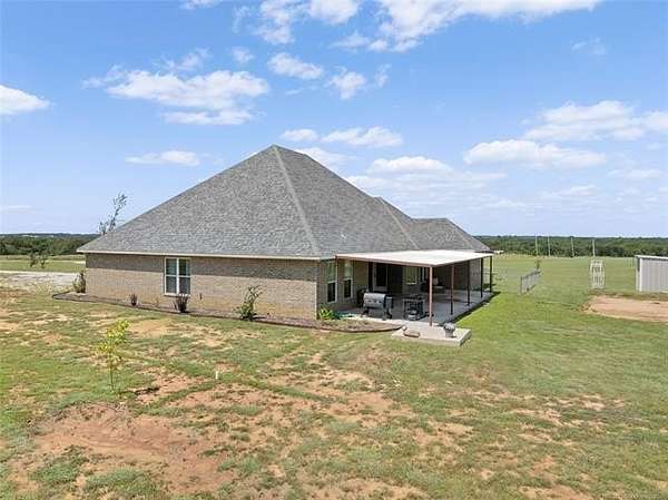 !! PRICE IMPROVEMENT !! Welcome to 30 Lobo Lane - a stunning 2020-built brick home nestled on nearly 5 acres in the Lone Grove School District. This meticulously maintained property offers the perfect blend of luxury, functionality, and peaceful country living, all just minutes from town. Step inside to discover an open-concept layout with soaring vaulted ceilings and elegant porcelain tile throughout. The spacious living area flows seamlessly into a chef's kitchen designed for both beauty and practicality. Featuring white quartz countertops, a subway tile backsplash, a large center island with seating, and custom cabinetry, this kitchen is ideal for entertaining or everyday living. A cozy breakfast nook with picture windows offers tranquil views of the pond and surrounding landscape, while the formal dining room provides space for gatherings under recessed lighting and raised ceilings. The home boasts four generously sized bedrooms and three full bathrooms, including a luxurious primary suite with dual walk-in closets and a spa-style bath. The upstairs bonus room adds flexible space for a media room, home office, music studio, or playroom - tailored to your lifestyle. Outside, enjoy beautiful views of the pond and open acreage from the covered patio, perfect for relaxing or hosting guests. A storm cellar offers peace of mind, and the 30*30 insulated shop building with electric provides ample space for hobbies, storage, or a home-based business. The 2-car garage adds convenience, and the property's layout offers privacy and room to roam. Located in a quiet subdivision with a welcoming community feel, this home combines modern amenities with the charm of rural Oklahoma. Whether you're looking for a forever home, a retreat from city life, or a place to grow, 30 Lobo Lane delivers exceptional value and lifestyle. Don't miss your chance to own this one-of-a-kind property.