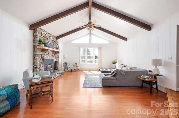 Escape to a private 1.5-acre (MOL) property offering peace, privacy, and self-sufficiency. Surrounded by nature, you'll enjoy mountain views and stunning sunsets. This isn't just a home; it's a homesteading haven. The land is perfect for gardens, chickens, or other farm animals. Private land offers hunting potential. Inside, discover a warm, inviting home filled with natural light. Rustic elegance shines through a rock fireplace, hardwood floors, and exposed beams. The open-concept design connects the living, dining, and kitchen areas, perfect for entertaining. The expansive lower level is versatile, with a den (and wood stove), ideal for a game room or office, and a large, bright, open craft or hobby room. A second integrated garage provides workshop or additional storage space. For more room, an additional 5-acre ( MOL ) parcel is available, ensuring even greater privacy or expansion for farming or a family compound. This property is a rare find. Open Use Zoning allows for many uses. Super convenient to the newly approved AdventHealth facility. Owner financing is available for the adjacent parcel of 5 acres MOL. Contact the agent for terms.