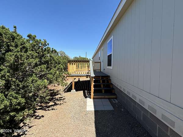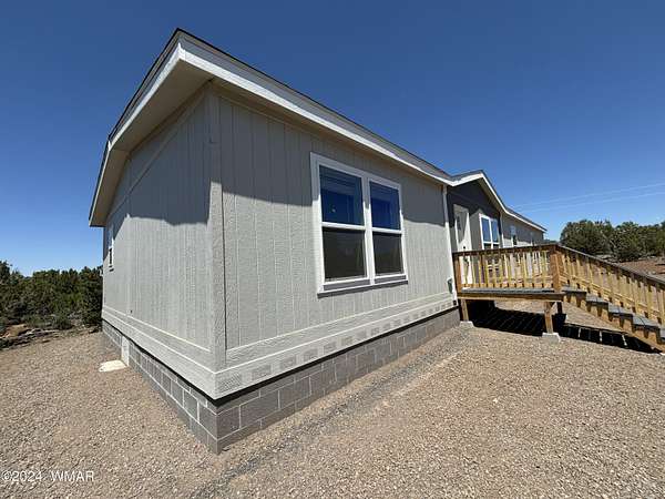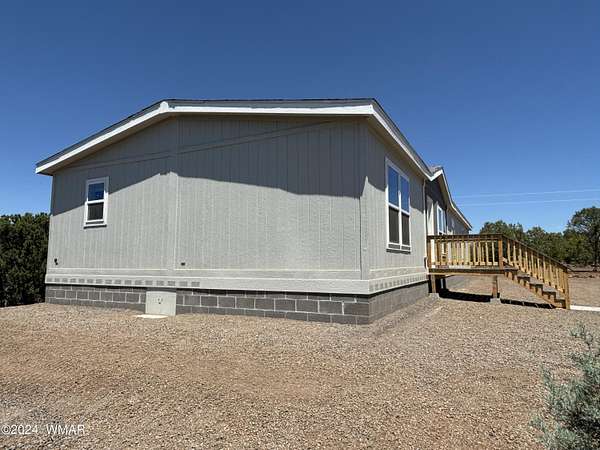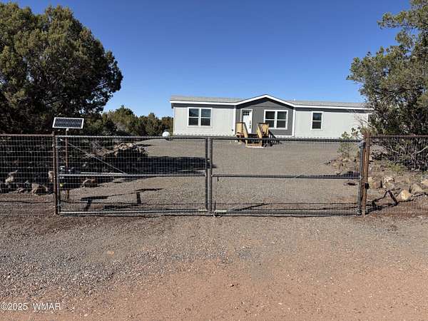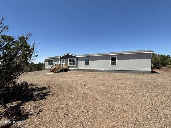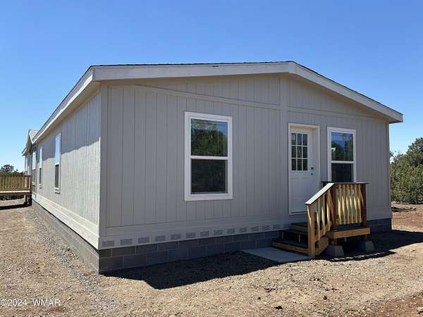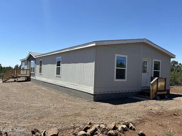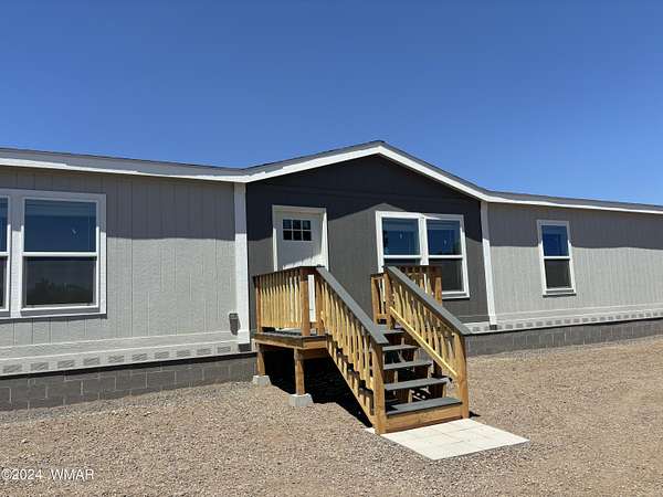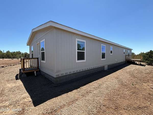Experience modern living in the heart of the White Mountains with this brand new, never-lived-in 2072 square-foot manufactured home in beautiful Vernon, Arizona. Nestled on 2.33 acres total, the property does includes two separate lots. The primary lot features four spacious bedrooms and two modern bathrooms, offering ample space and comfort. The primary lot allows for additional structures, providing potential for future expansion such as a garage, barns or out buildings. The secondary lot, while adding to the generous total acreage, does not permit new structures but would allow for, temporary structures space for animals or a buffer from the world around you. Embrace the serene surroundings and make this pristine, move-in-ready home yours today!