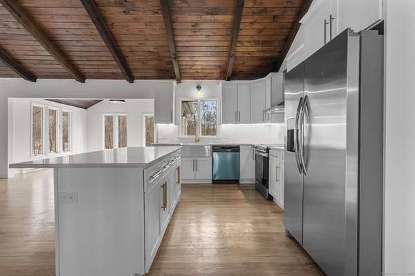 Nestled on a picturesque 2-acre lot in Sandy Hook, this beautifully updated 4-bedroom, 2-bath raised ranch combines modern style, privacy, and versatile living space. The sun-filled main level features vaulted ceilings, gleaming hardwood floors, and an open layout perfect for today's lifestyle with a walkout balcony off the kitchen. A spacious living and dining area flows seamlessly into this large deck, ideal for entertaining or relaxing in nature. The kitchen offers brand-new stainless steel appliances, abundant white shaker cabinetry, and sleek quartz countertops, ready for your personal touch. The fully finished walk-out lower level expands your options with a cozy family room, sliders to the second lower deck, an additional bedroom, and a full bath-ideal for guests, home office, or multi-generational living. Step outside to a tranquil wooded backyard that feels like a private retreat with complete privacy from every angle. Conveniently located minutes from schools, shopping, dining, and major highways, this home is move-in ready and waiting for your vision. Don't miss the NEW & IMPROVED 30 Old Green Road-schedule your showing today!