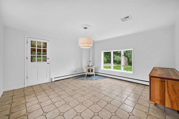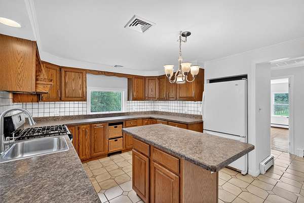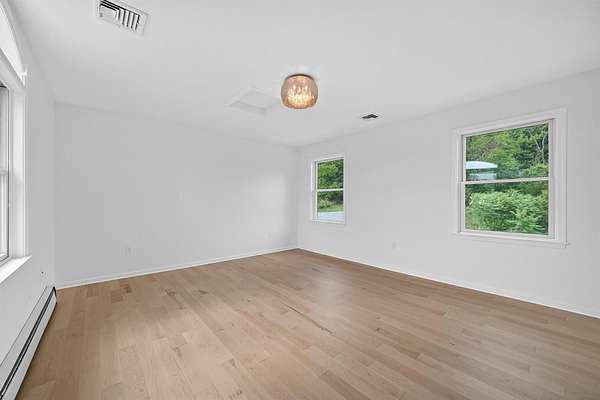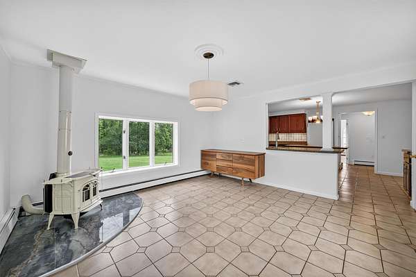 Welcome to your dream country house! This 3 bedroom, 2.5 bathroom home includes 2 additional flex space rooms. Set on 3 picturesque, park-like acres, this property offers serenity and privacy with no adjacent neighbors in sight. 30 Old Ridge is tucked away on a quiet countryside road, under 5 minutes from the vibrant Main Street of the Village of Warwick, in the highly rated Warwick Valley School District. Find yourself surrounded by rolling pastures, mountains, valleys, and lakes. A bit of history: this home was once a one room school house during the turn of the century. The property features plenty of natural light and a convenient layout: open floor plan kitchen with island, featuring ample wood cabinetry; adjacent to family room and dining room with a wood burning stove and plenty of closets. Three bedrooms on the first floor, a half bathroom, and access to front and rear entrances. Oversized front bedroom with its own full bathroom can be used for multi-generational living or as an office space. There is a convenient mudroom at the rear entrance, with steps leading down to the 2 room unfinished basement with a laundry room, utility room, ample storage space, and an attached garage. The newer addition second floor has a huge primary suite with 2 walk in closets, a bonus room, and a bathroom featuring both an oversized jetted soaking tub and a shower, plus a double vanity and closet. You will find brand new Mirage hardwood flooring (Canadian hard maple) throughout, and an additional linen closet. The exterior of the home is brick and vinyl, with a covered porch, plus a fenced in front garden for pets, where you can watch beautiful sunsets over the two ponds across the street every evening. The back yard is perfect for entertaining, relaxation, gardening, sports/outdoor activities or hobbies. Additional features are a detached garage/workshop, sheds, and both asphalt and concrete patios. This property has central air conditioning and parking for up to 9 vehicles. Under 50 miles to NYC, and 15 minutes to NY-17. Plenty of interior and exterior storage and spaces for hobbyists/work from home individuals. Layout allows for privacy for all those living and visiting here. Prime location, minutes from: eateries, breweries, wineries, shops, farmers markets, gyms, banks, post office, schools, public transportation options for commuters (bus to NYC), lakes, hiking, orchards, farms, fishing/boating/beach on Greenwood Lake, parks, pools, golf, skiing, apple picking, and so much more. There are outbuildings in the wooded part of the property that were previously used for livestock and can be restored into custom projects that suit your needs (structures already on town survey). Upgrades include: LP boiler system + thermostats 3/2025, LP tanks (rented) 3/2025, Mirage hardwood floors (prefinished Canadian hard maple) 5/2025, Vermont Castings enameled wood burning stove with porcelain tile hearth pad 2022, Fresh interior and exterior paint 5/2025, LG smart washer and LP powered dryer 2022; Central AC system professionally serviced, tuned up, and ducts cleaned 5/2025; New unfinished cement floor in attached garage 2023, Septic inspected and pumped 3/2025, Exterior power washed 4/2025, New lighting fixtures 2024, New pull blinds 2024, Removal of at-risk trees 2024. Sold AS IS. Schedule your showing today!!