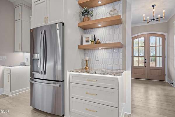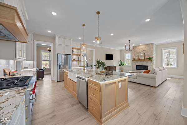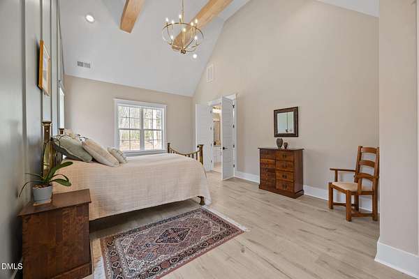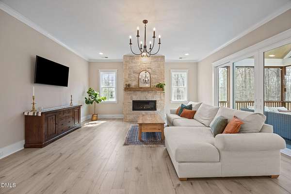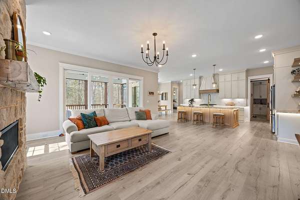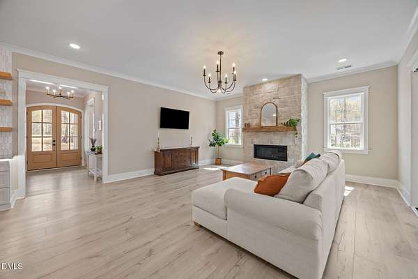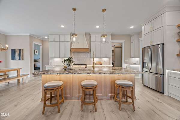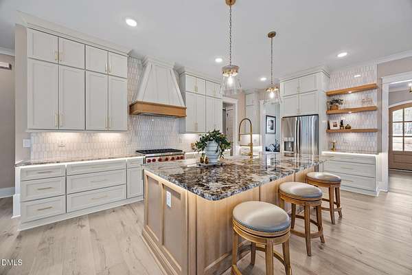 Welcome to an extraordinary custom-built residence in the prestigious gated community of Hidden Lake--where refined luxury meets a truly unmatched lifestyle. Set on a private 2.8 acre homesite this home offers access to a breathtaking 75-acre spring-fed lake, complete with a boathouse, kayaking, fishing pier, scenic pavilion, and miles of nature trails--creating a daily experience that feels more like a retreat than a neighborhood. Every inch of this home was thoughtfully designed and meticulously upgraded, showcasing the craftsmanship and attention to detail expected from a high-end custom build. The award-winning kitchen is the heart of the home, featuring custom soft-close cabinetry, designer backsplash, under-cabinet and island lighting, premium appliance package including a Wolf range, and a walk-in pantry that blends beauty with functionality. The owner's suite is a true sanctuary, highlighted by a vaulted ceiling with exposed beam, a spa-inspired zero-entry double shower, freestanding soaking tub, and Taj Mahal natural stone finishes--creating a private retreat that rivals luxury resorts. Throughout the home, curated design elements elevate the living experience--from custom accent walls and wallpaper to upgraded lighting, barn door detailing, and high-end finishes in every space. Thoughtful infrastructure upgrades include a recirculating tankless water heater, enhanced HVAC system for future expansion, and extensive electrical additions including EV charging capability. Outdoor living is equally impressive, featuring a covered porch, flagstone front entry, solid cedar posts, and professionally enhanced landscaping. The property also includes a sealed crawl space, epoxy garage flooring, upgraded garage door, additional concrete improvements, and numerous structural enhancements rarely found in new construction. Hidden Lake is known for its expansive estate homes, large wooded homesites, and blend of privacy and community--offering a rare combination of peaceful seclusion and convenient access to Wake Forest and Raleigh. This is not just a home--it's a custom-crafted lifestyle defined by elegance, nature, and intentional design.