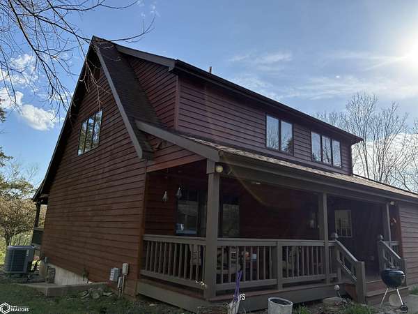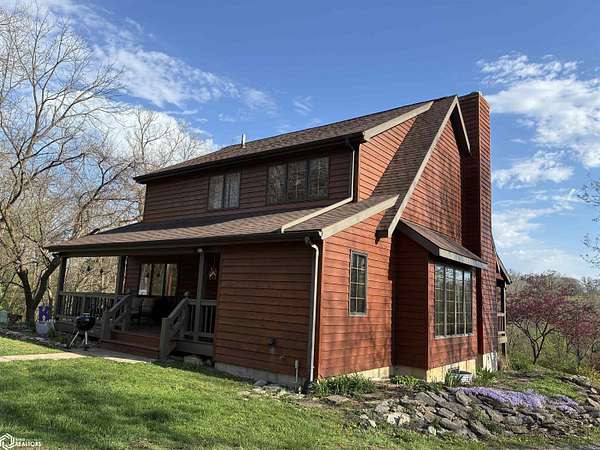 This distinctive property blends privacy with rustic charm, all surrounded by beautifully landscaped grounds. Enjoy peaceful mornings and relaxing evenings from the inviting front and back porches, perfectly positioned to take in the scenic views. Set on 1.98 acres, the home offers a tranquil retreat while remaining conveniently close to town. A spacious 3-car garage includes a loft with excellent potential for additional usable space. Inside, the home features a dedicated mud/laundry room and an eat-in kitchen with an island for added seating and functionality. The living room is warm and welcoming, highlighted by a wood-burning fireplace and a large window overlooking the lush property. A custom bookshelf frames the staircase leading to an expansive loft area and a private ensuite bedroom. The main level also includes two additional bedrooms and a full bathroom. The finished basement provides even more living space with a family room, fourth bedroom, and another full bathroom. A separate storage area offers the opportunity to be converted into additional living space and includes a walkout. Major updates include a new roof in 2016 and updated furnace and central air in 2019. The septic system was inspected and pumped on April 13. The property is being sold as-is.