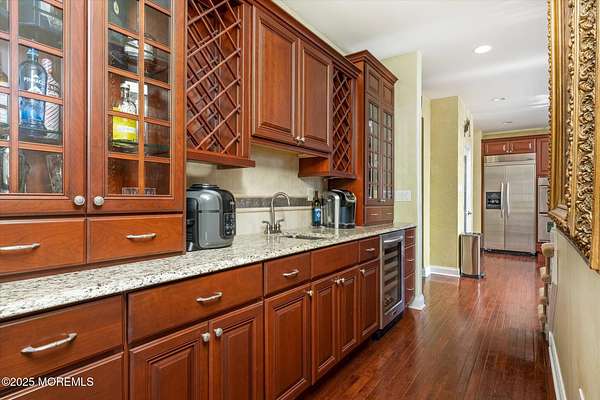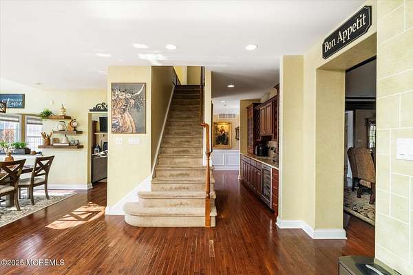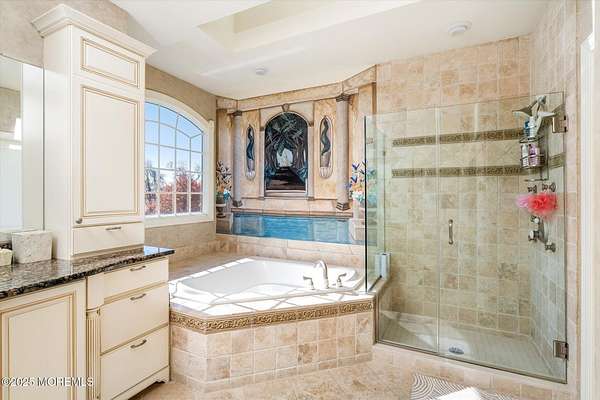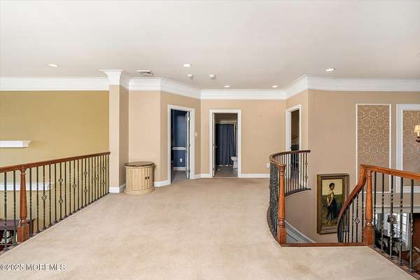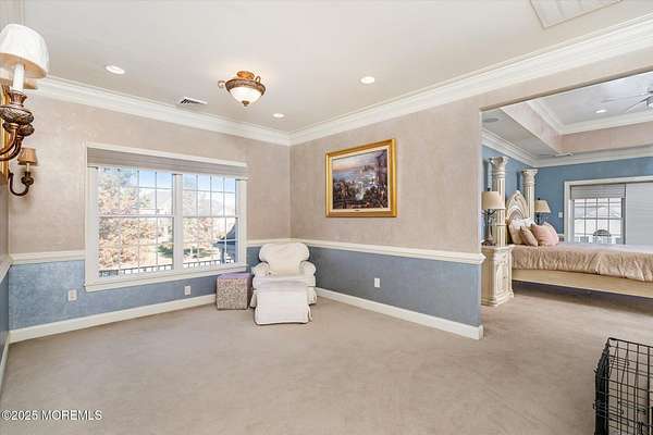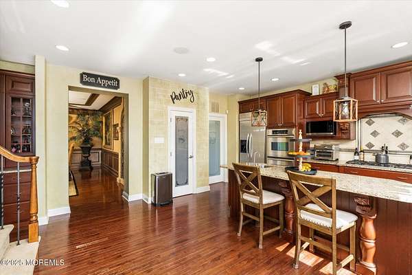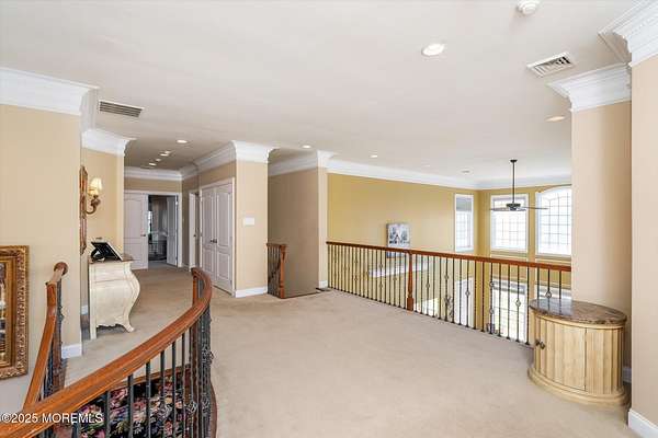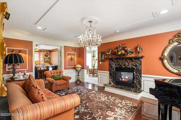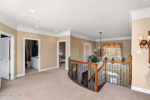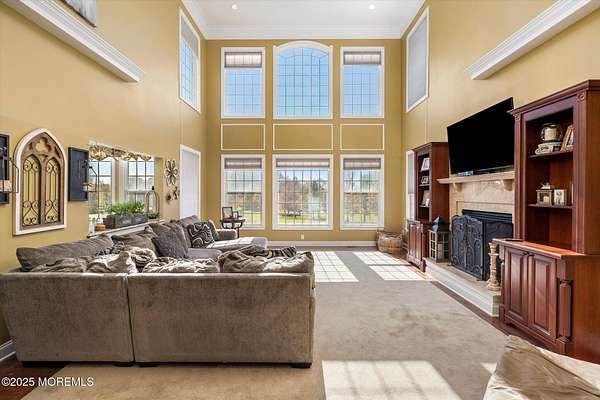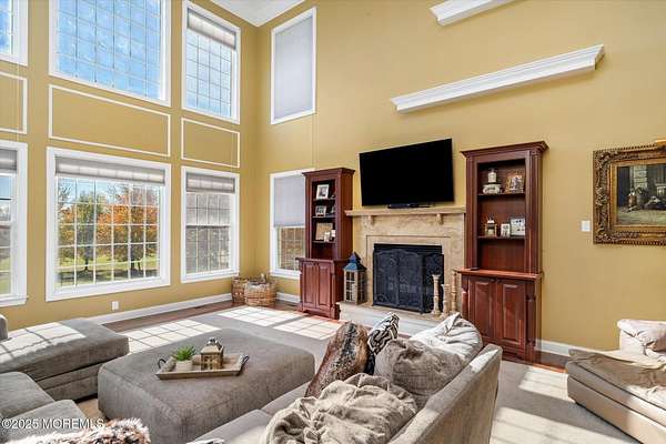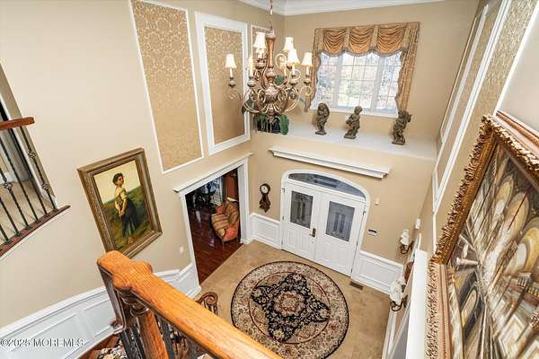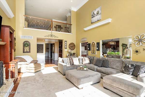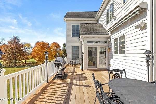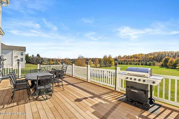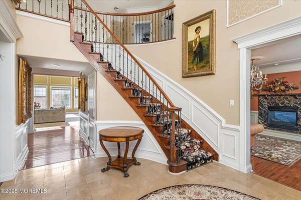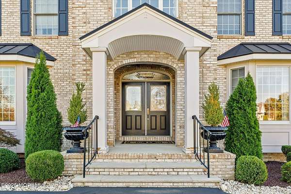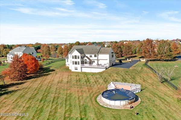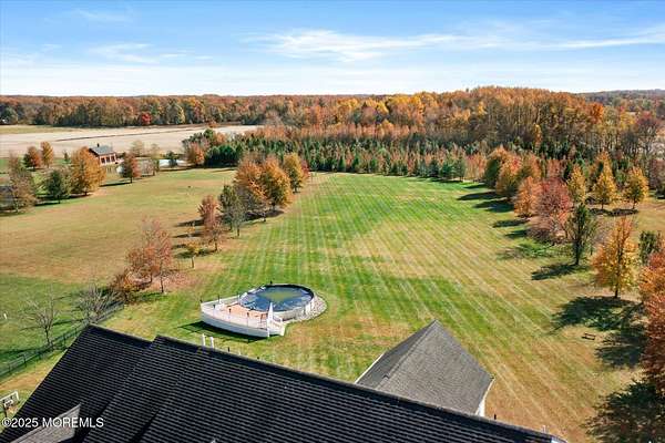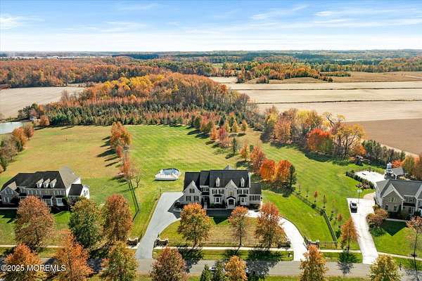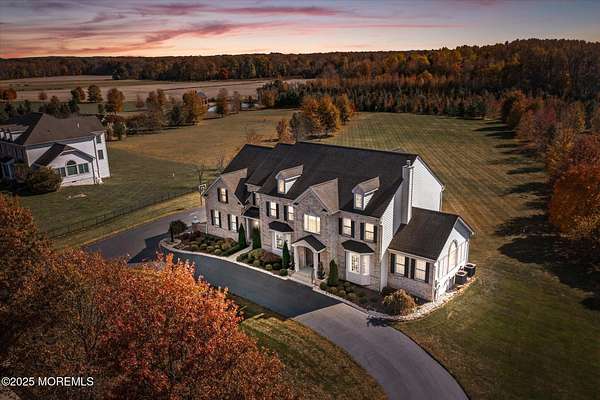 Stunning Gated Estate in Prestigious Upper Freehold Township! For those of only the finest of taste, this magnificent five-bedroom, four-and-a-half-bath center-hall Colonial in Upper Freehold Township exemplifies timeless elegance and exceptional craftsmanship. Perfectly positioned just outside the charming and historic village of Allentown, this estate sits behind a gated entrance and circular driveway on nearly five acres of beautifully manicured grounds, offering the ultimate in privacy and sophistication. Step through the stately front doors into a soaring two-story foyer, where a custom circular staircase, elaborate trim work, and gleaming hardwood floors immediately impress. The open, flowing layout is both gracious and inviting, designed for refined entertaining and comfortable daily living. To the left, the formal living room features tray ceilings, a chandelier, and detailed moldingsperfect for intimate gatherings. To the right, the formal dining room offers an equally elegant setting for hosting memorable dinners. Between these spaces, a two-sided fireplace connects seamlessly to the sun-drenched conservatory addition, creating a warm and inviting atmosphere year-round. A private first-floor office or study provides an ideal work-from-home retreat. The two-story family room serves as the dramatic centerpiece of the home, showcasing 20-foot ceilings, walls of glass, and architectural details that fill the space with light and grandeur. The expansive gourmet kitchen will delight any culinary enthusiast. It boasts custom cabinetry, a large center island with multiple sinks, and premium appliancesblending form and function effortlessly. The kitchen flows into the family room for easy entertaining and offers access to the Trex deck, where you can enjoy morning coffee or sunset views overlooking acres of open land. Additional features include a first-floor laundry room, powder room, and three-car attached garage for everyday convenience. A back staircase offers a secondary access point to the upper level, enhancing flow and flexibility. Upstairs, the primary suite is a true retreat, designed with comfort and luxury in mind. This grand master bedroom includes dual walk-in closets and his-and-hers bathrooms, providing the ultimate in privacy and sophistication. Four additional bedrooms and two full bathrooms complete the second floor, offering ample space for family and guests alike. The finished walkout basement offers extra-high ceilings and generous space for recreation, a home theater, gym, or additional living quarters. Its thoughtful design adds functionality and potential for a variety of uses. Outside, the Trex deck overlooks 4.5 acres of open, scenic land, bordered by preserved farmland and forest that ensure lasting privacy and tranquility. The entire perimeter of the property is illuminated with custom lighting, enhancing its beauty by night and creating an inviting atmosphere for outdoor entertaining. Combining luxury and convenience, this home's location is ideal for commuters and nature lovers alike. Just 10 minutes from the New Jersey Turnpike, 20 minutes to the Hamilton Train Station, and 30 minutes to the Jersey Shore, it offers easy access to all major destinations. New York City and Philadelphia are each within an hour's reach, making this property a rare blend of peaceful living and accessibility. Located in one of Upper Freehold Township's most desirable and upscale neighborhoods, the home is close to top-rated schools, scenic parks, equestrian facilities, and the charming shops and restaurants of downtown Allentown.