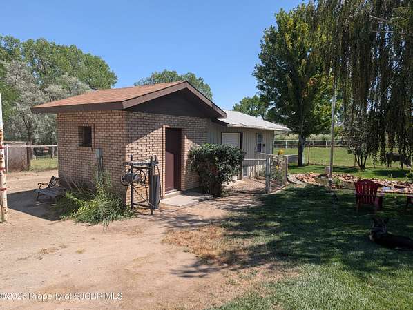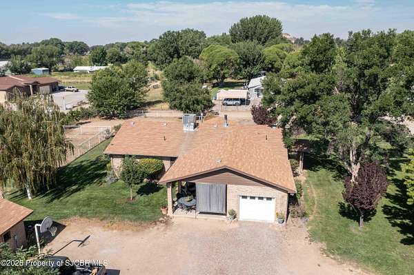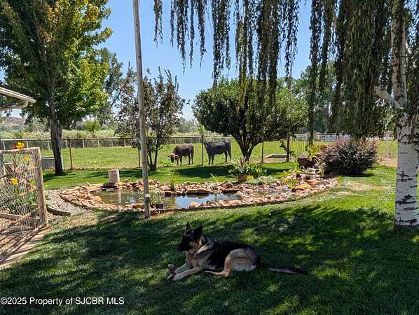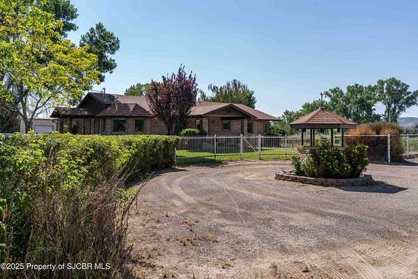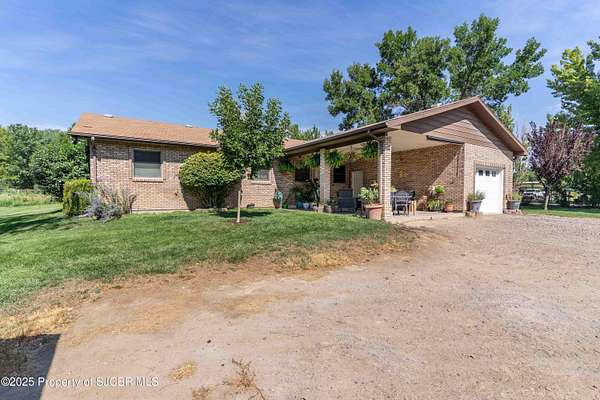 Stunning home with pride in ownership. This gorgeous home features 3 BR's, 2 full baths, large Master with large walk in closet,updated bath, double sinks, wide hallway, vaulted ceiling, pellet stove, kitchen with granite counter tops, SS appliances,formal dining room, large pantry room off kitchen, garage plus a 30X30 shop which is heated with a WB stove and insulated. Ditch forirrigation plus a well for irrigating a huge garden area, great horse property which is completely fenced or for other animals, chicken coup, hobbyroom just off the well house which is also insulated, sprinklers systems which is run off the irrigation, another area which looks like a park like setting, room to build another shop orlarge garage, fruit trees, beautiful pond that soothes your soul, large covered patio with fans for relaxation, RV parking, completelyfenced yards, Refrigerated A/C, all brick home and only 2 owners have resided here. Quiet and very secluded..A must see...