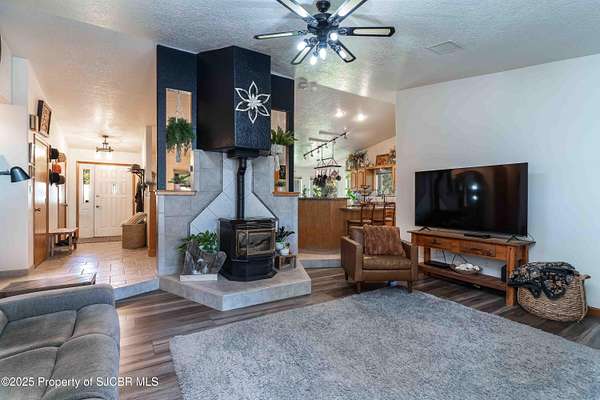 - CTH/Vlt Ceilings, Ceiling Fan(s), Garage Door Opener, Pellet Stove