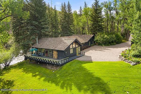 Welcome to this charming cabin-style retreat on a picturesque 2-acre property. Built in 1969 and meticulously cared for by the same family, this home exudes timeless appeal. Step inside to find a spacious living area with a cozy stone fireplace, offering serene views of the surrounding natural beauty. With four bedrooms and bathrooms, there's ample space for family and guests. Outside, the property boasts over 500' of Roaring Fork River frontage, providing a private and picturesque escape. Embrace the tranquility of rural living while remaining conveniently close to amenities. Don't miss the opportunity to own this historic gem. Schedule a viewing today!