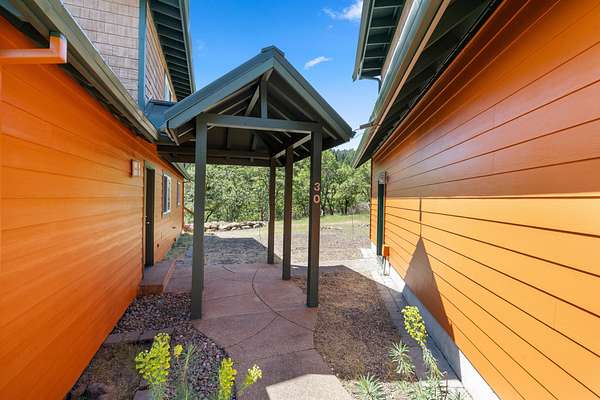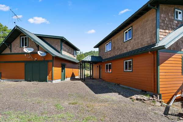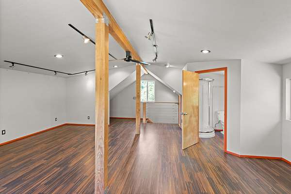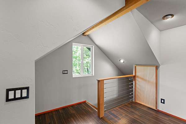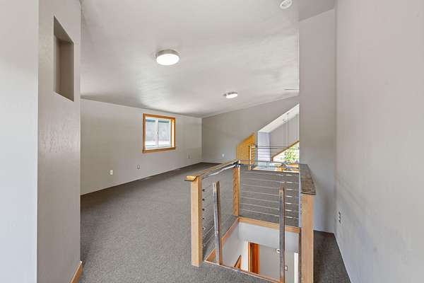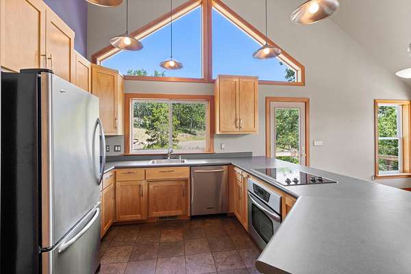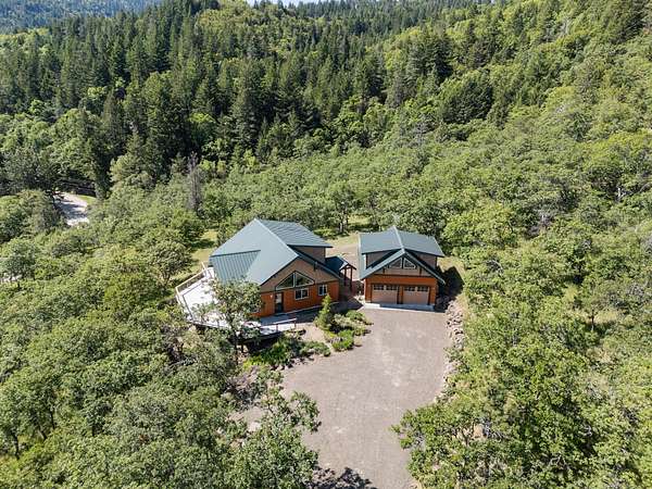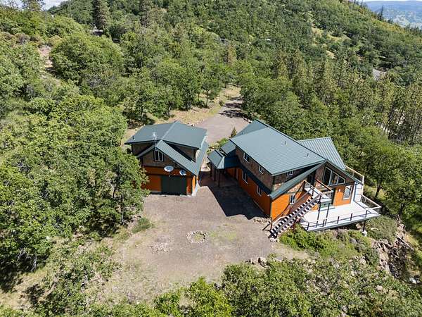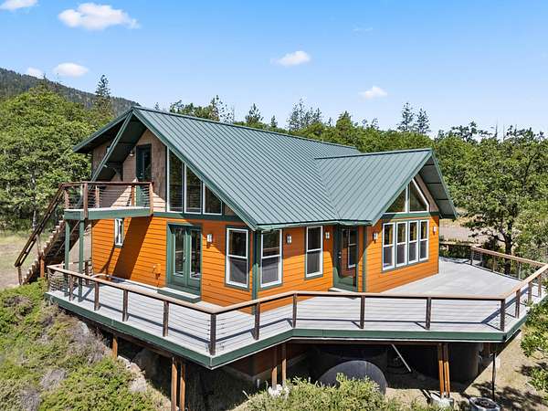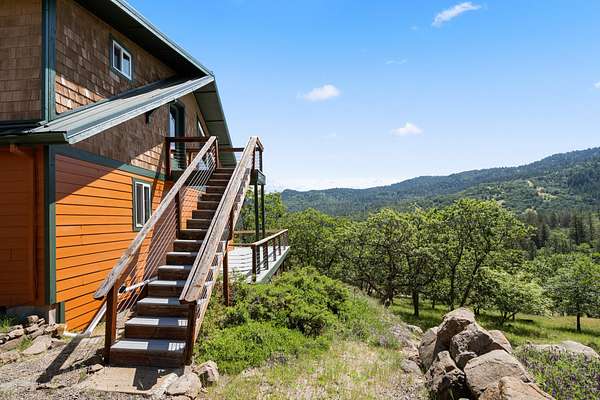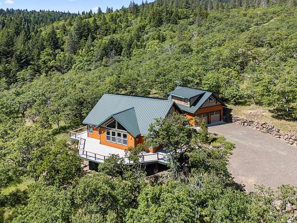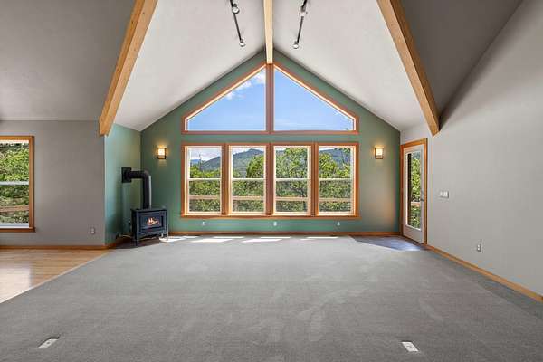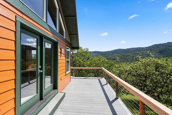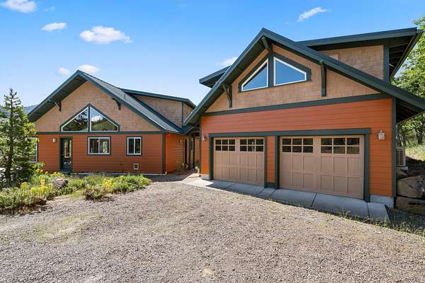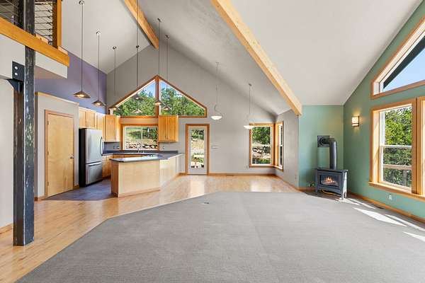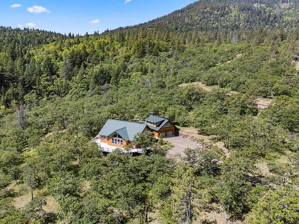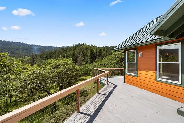 Peaceful mountain retreat with sweeping views and abundant natural light from expansive picture windows. This bright, open-concept home blends craftsman character--wood trim and beams--with modern industrial elements like steel beams, metal cable railing, and stylish fixtures. Soaring vaulted ceilings create an airy feel throughout. Enjoy main-level living with a spacious primary suite featuring a double vanity, walk-in closet, and access to the wrap-around deck. The kitchen offers a built-in cooktop, stainless steel appliances, solid wood cabinetry, and pantry. Upstairs includes a versatile loft and full bath. Above the 2-car garage, 672 sqft of bonus space with full bath and laminate flooring offers ADU potential (buyer to verify). Well system fully upgraded with new pump & casing, 900+ gallons of storage, and filtration. Fresh 2025 exterior paint and metal roof complete this rare rural property!