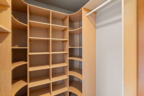 - Built-In Features, Ceiling Fan(s), Double Vanity, Enclosed Toilet(s), Fiberglass Stall Shower, Kitchen Island, Laminate Counters, Open Floorplan, Pantry, Primary Downstairs, Vaulted Ceiling(s), Walk-In Closet(s)