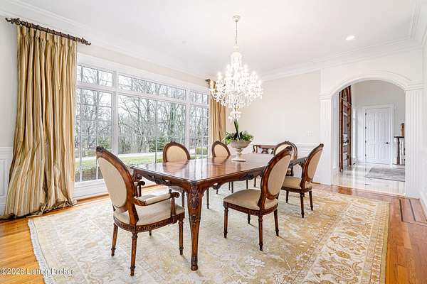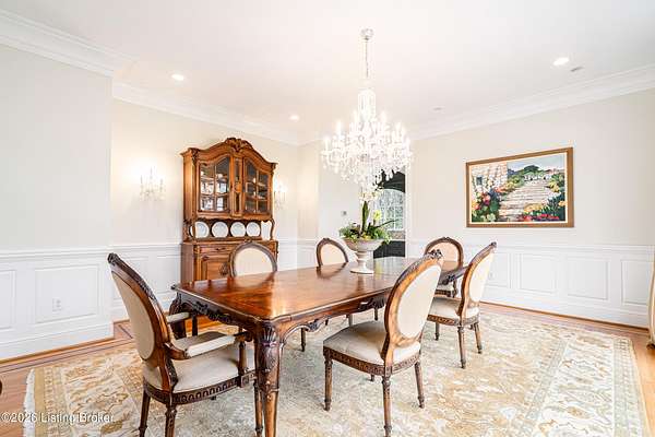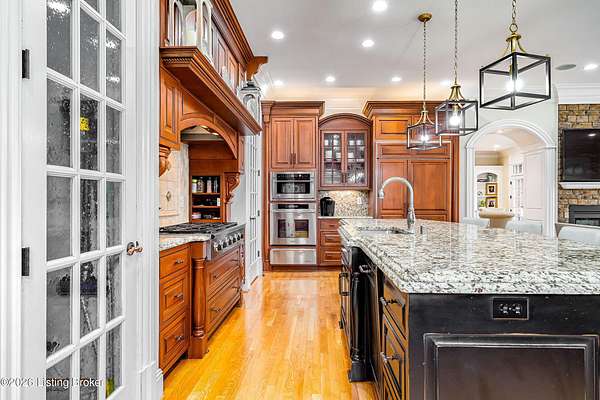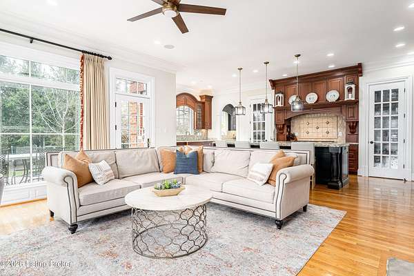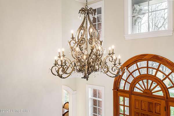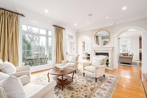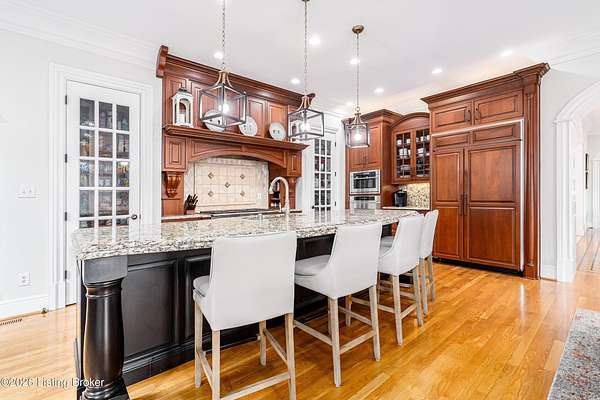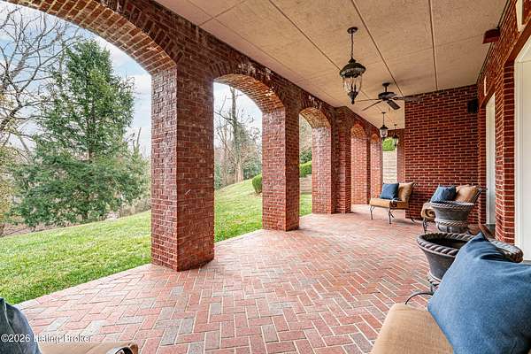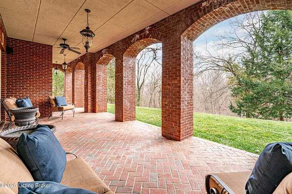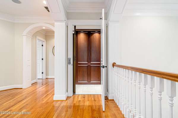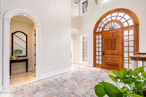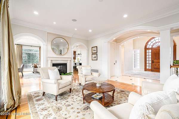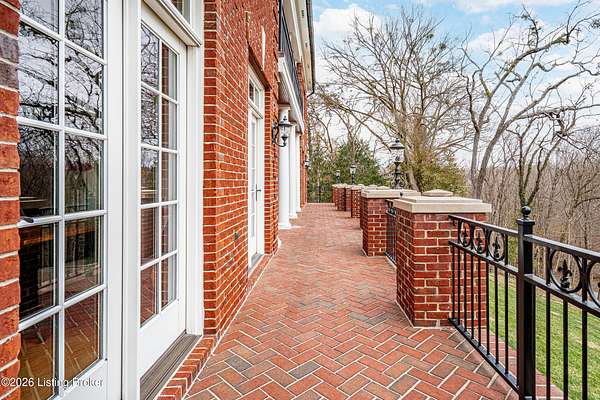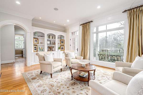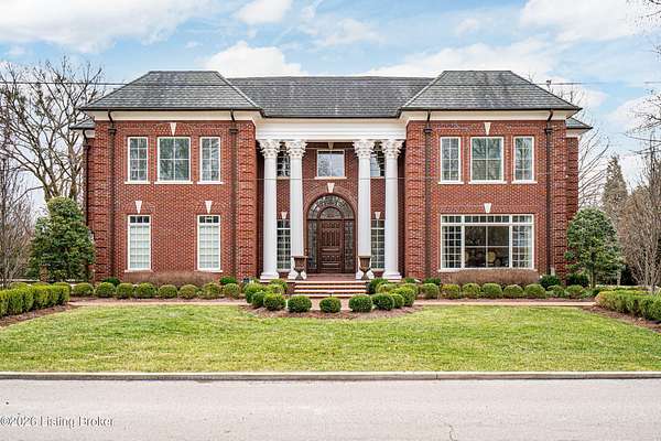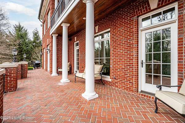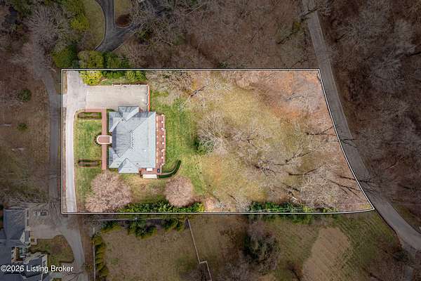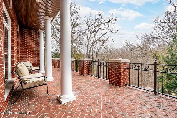 Custom-built in 2006 and ideally situated on over 1.7 acres in prestigious Indian Hills, this five-bedroom home offers quality construction, thoughtful design, and modern efficiency. Each bedroom features its own en-suite bathroom, along with multiple living spaces designed for comfort and entertaining. The home includes geothermal heating and cooling, a new roof 2026, and an elevator servicing all three floors. The welcoming foyer introduces arched entryways, detailed millwork, hardwood flooring, and vaulted ceilings that continue across the main level. The great room features built-in bookcases, a gas fireplace, and expansive rear views from the balcony that spans the back of the residence. The gourmet kitchen offers an oversized island, custom cabinetry, high-end appliances, and a butler's pantry, with an adjacent formal dining room. A tucked-away office space with access to the rear patio has potential for a first-floor bedroom. Upstairs, three generous en-suites include a well-appointed primary bedroom with a sitting area, private balcony access, dual oversized closets, and a spacious bath with soaking tub and separate shower. The lower level expands the home's versatility with a large living area, full kitchen, theater room, hidden wine cellar, and additional bedroom suite. A three-car garage completes this exceptional Indian Hills property. Featured in a Courier Journal article dated April 23, 2023.