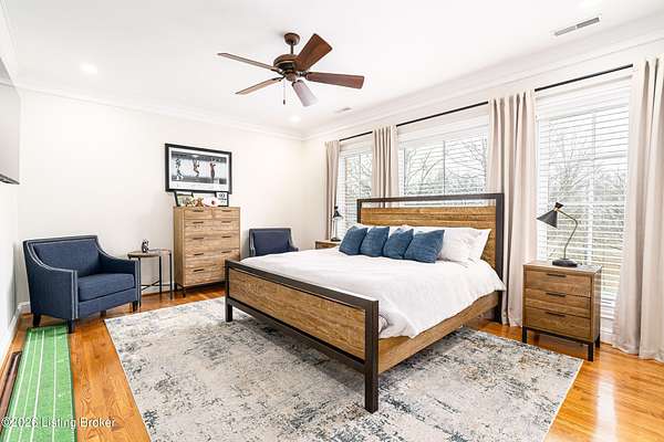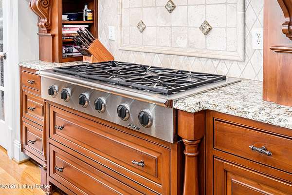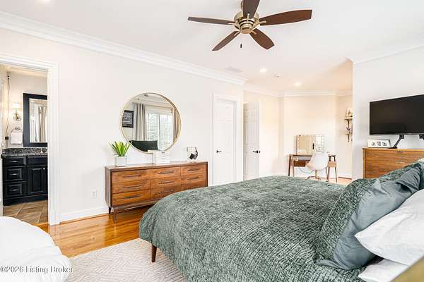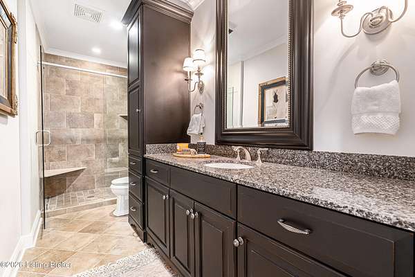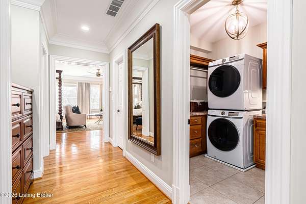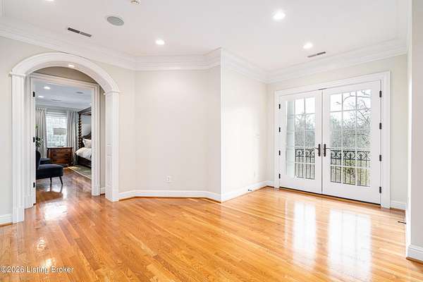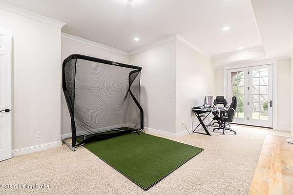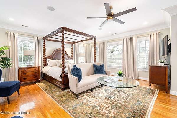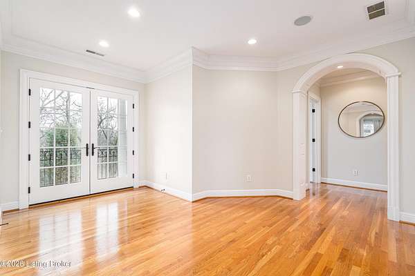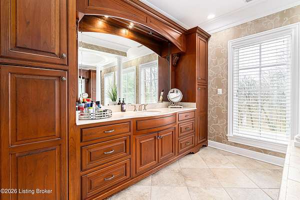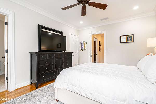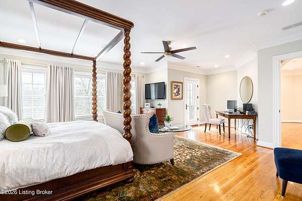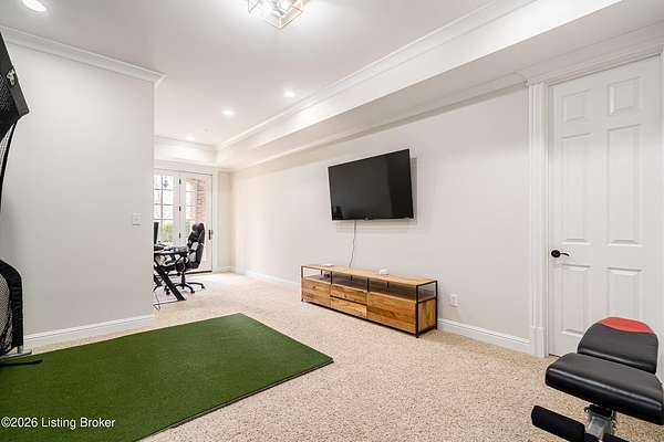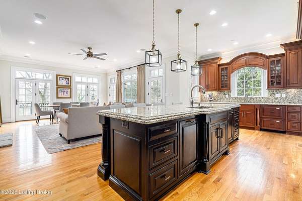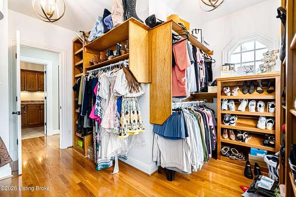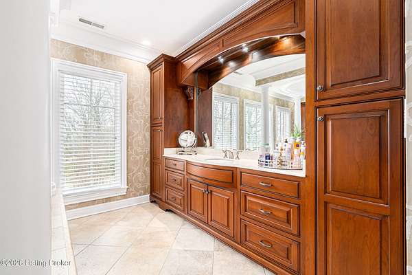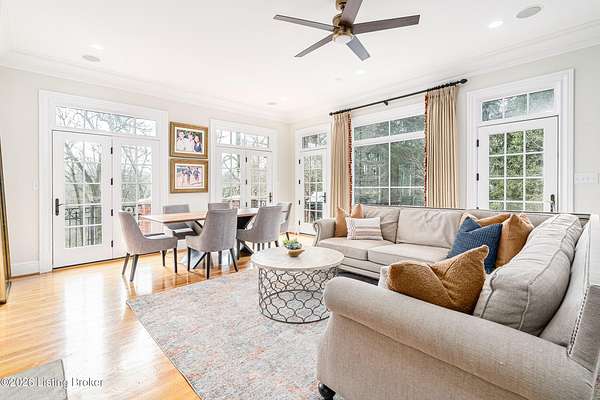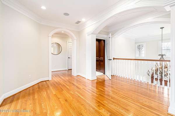 Custom-built in 2006 and ideally situated on over 1.7 acres in prestigious Indian Hills, this five-bedroom home offers quality construction, thoughtful design, and modern efficiency. Each bedroom features its own en-suite bathroom, along with multiple living spaces designed for comfort and entertaining. The home includes geothermal heating and cooling, a new roof 2026, and an elevator servicing all three floors. The welcoming foyer introduces arched entryways, detailed millwork, hardwood flooring, and vaulted ceilings that continue across the main level. The great room features built-in bookcases, a gas fireplace, and expansive rear views from the balcony that spans the back of the residence. The gourmet kitchen offers an oversized island, custom cabinetry, high-end appliances, and a butler's pantry, with an adjacent formal dining room. A tucked-away office space with access to the rear patio has potential for a first-floor bedroom. Upstairs, three generous en-suites include a well-appointed primary bedroom with a sitting area, private balcony access, dual oversized closets, and a spacious bath with soaking tub and separate shower. The lower level expands the home's versatility with a large living area, full kitchen, theater room, hidden wine cellar, and additional bedroom suite. A three-car garage completes this exceptional Indian Hills property. Featured in a Courier Journal article dated April 23, 2023.