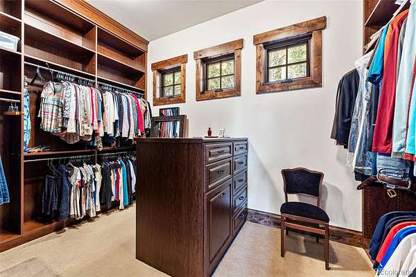The main floor primary retreat offers a serene escape with access to the wrap-around covered deck, a spacious walk-in closet, and spa-like bathroom complete with a steam shower. An office on the main level provides a quiet workspace, while the upper level features a versatile living area with two spacious rooms, a full bath and walk-in closet, suitable for various uses.