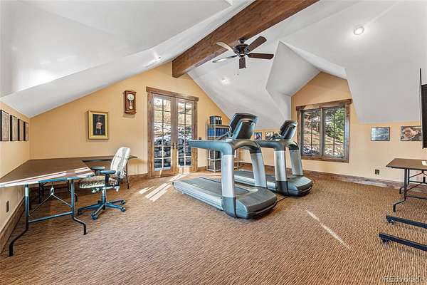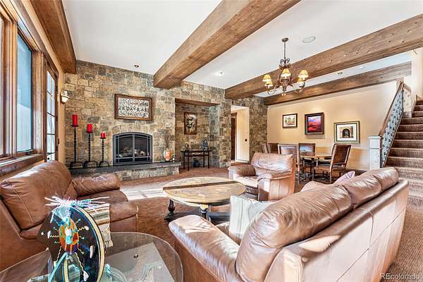 Additional amenities include a heated motor court, a four-car garage, and easy proximity to hiking and biking trails within the community. This property exemplifies mountain living at its finest, combining luxury, functionality, and natural beauty in a secluded setting.