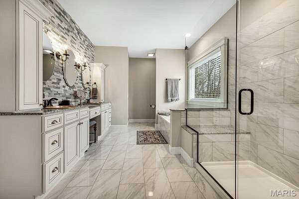 Discover unparalleled luxury and versatility in this custom Craftsman style estate, perfectly situated on a 4.5 acre private and wooded lot. From the moment you arrive the striking architectural lines and manicured landscaping signal a home of exceptional quality. The heart of the home is a magnificent open concept great room merging seamlessly with a gourmet kitchen. Natural light pours through windows flanking a floor to ceiling stone fireplace. The kitchen itself is a showstopper boasting custom white cabinetry, quartz countertops, stainless steel appliances with double wall ovens, a stylish subway tile backsplash and an expansive center island with storage that is perfect for casual mornings or grand entertaining. Adjacent to the kitchen is the breakfast room and hearth with coffered ceilings that open directly to a serene screened in porch. The custom wood built-in shelving in the hearth room surround a stone propane fireplace. Don't forget about the home's Formal Dining room with views of the front lawn! Retreat to the primary suite, a true sanctuary featuring a spa-inspired ensuite and His and Hers walk-in closets. Indulge in the oversized walk in tile shower, deep soaking tub under a picturesque garden window and massive dual sink vanity with a dedicated makeup station. Two additional main floor bedrooms, a full and half bath offer comfort and style for family or guests. The finished walk out lower level doubles your living space featuring a secondary family room with a stone fireplace and built in library style shelving. A media room, 4th bedroom and full bath can also be found in the lower level. While here visit the 13x30 workshop that has a full garage door facing the rear of the home that opens to a huge concrete patio. The thoughtfully designed lower level still allows for ample storage space. For the hobbyist or car enthusiast the garage space is unmatched. In addition to the 3 car 23x36 attached garage the estate features a massive detached garage and a covered lean-to. Complete with a main floor laundry room this estate offers every modern convenience in a tranquil park like setting.