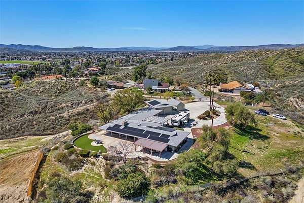 Get out of the city! Own an Estate at the Top of the Hill! Stunning Custom Home with Breathtaking Views! Welcome home to this remarkable, highly desirable Ranch Style residence nestled on 4.5 acres, offering a rare lifestyle surrounded by the natural beauty of San Jacinto Mountains & Hemet Valley. This move-in ready home seamlessly blends comfort, luxury, & functionality, making it an entertainer’s dream & the perfect family sanctuary. Enjoy 4 bedrooms and 2.5 baths, including an oversized primary suite featuring an en-suite bathroom & a cedar-lined walk-in closet with abundant storage. There is pleanty of room if you want to have your own CHICKENS or perhaps goats. Expansive Kitchen it boasts double ovens, dual sinks, a gas stovetop, ample cabinets & a walk-in pantry. Ideal for social gatherings. Adjoining dining room & living room invite relaxation & connection.
