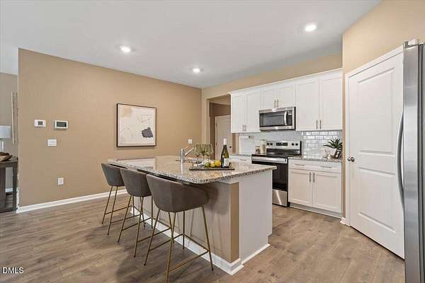 The highly sought-after Cali Ranch plan in Baker Farm can be yours today! Be sure to ask about the lender credit available when using our preferred lender. This beautiful ranch-style home sits on over 5.6 acres, offering peaceful views of mature trees from your screened porch. Step through the foyer and enjoy 9-foot ceilings and hardwood laminate flooring throughout the main living areas. The upgraded kitchen features Whirlpool stainless steel appliances--including the refrigerator--granite countertops, a ceramic tile backsplash, and more. The washer and dryer are also included. A sliding glass door leads to your screened porch, perfect for relaxing while overlooking the serene backyard. The owner's suite includes a double vanity and an oversized shower for added comfort. This home also comes with a transferable 10-year structural warranty from DR Horton.