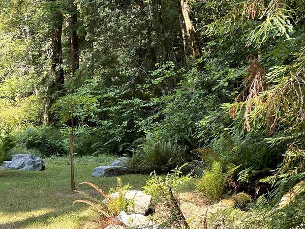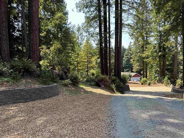 Welcome to Storybook Creek! Discover the perfect opportunity to build your dream home in a stunning, park-like setting surrounded by towering redwoods. This one-of-a-kind property offers the ultimate blend of privacy, natural beauty, and thoughtful landscaping. Wander down the artistic, winding pathway from your future home to a peaceful, year-round creek that flows gently through the back of the fern-covered grounds. This serene retreat offers a deep connection with nature, making it the perfect place to relax and recharge. Storybook Creek is more than a property—it's a peaceful sanctuary, waiting for your vision Enjoy outdoor entertaining under the charming covered gazebo or dine al fresco on the unique concrete leaf patio, all shaded by the majestic redwoods. Dappled sunlight filters through the trees, creating an enchanting, storybook ambiance that lives up to the property’s name. The lot is fully landscaped and ready to build, with plans engineered for an additional detached two-car garage featuring a 580 sq. ft. ADU—or opt for a stand-alone 1,200 sq. ft. ADU nestled among the trees. A bunker can also be incorporated into your design for added functionality. Included in the price: land, all existing improvements, and a water connection.
