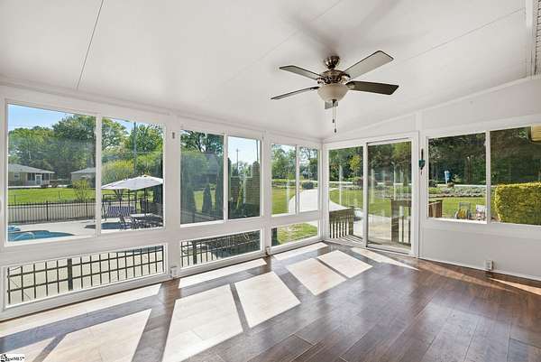 Welcome to this beautifully updated 3-bedroom, 2-bath brick ranch with a walk-out basement, ideally located in the heart of Mauldin, SC. Set on .85 acres with no HOA, this property offers the perfect blend of space, privacy, and flexibility. Step inside to discover a thoughtfully refreshed interior that balances modern updates with timeless charm. The walk-out basement adds valuable additional living space—perfect for a recreation room, home office, or private guest suite. Step outside and experience your own private retreat, featuring a gorgeous swimming pool—perfect for summer fun and entertaining guests. The finished sunroom offers a bright, relaxing space with direct access to the pool area, creating a seamless indoor-outdoor flow. Surrounding the home, you’ll find colorful, breathtaking landscaping that enhances the beauty and serenity of the property. Enjoy the convenience of being just minutes from Main Street, with easy access to shopping, dining, and the lively BridgeWay Station, featuring restaurants, coffee shops, and a welcoming community atmosphere. Quick connections to I-85 and I-385 make commuting effortless. Offering an ideal combination of location, land, and livability, this home is a standout opportunity in one of the area’s fastest-growing communities.
