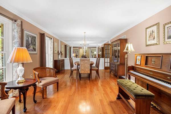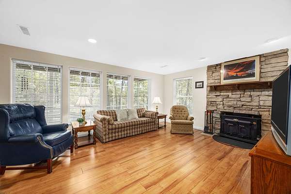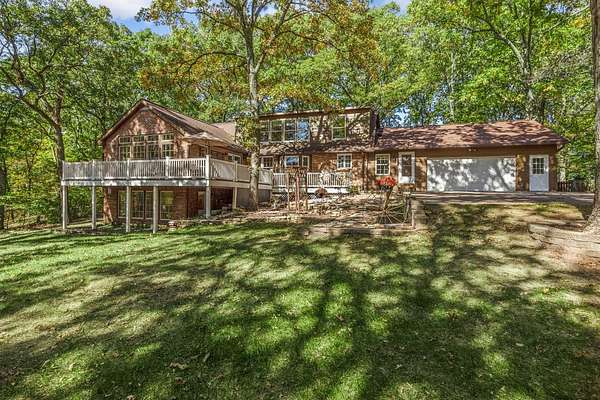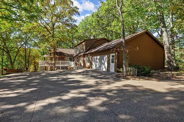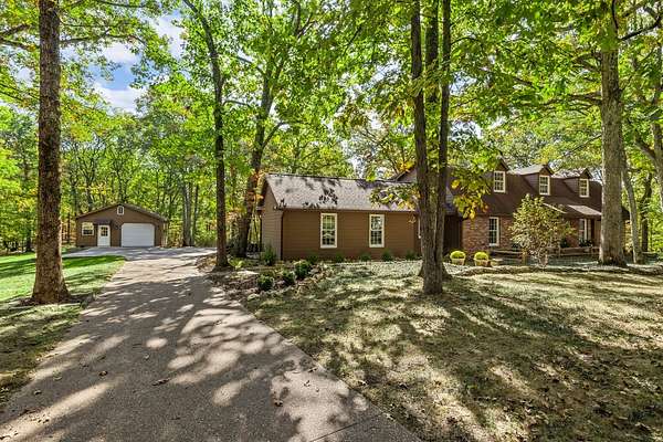 Welcome to your private sanctuary on approx. 26.5 acres of serene, park-like grounds. This meticulously maintained 1.5-story home combines elegance and natural beauty. An updated kitchen features warm wood cabinetry, quartz counters, stainless appliances, and a cozy breakfast bar. The dining nook opens to the living room and a grand great room with tall ceilings, a fireplace, and expansive views. The main-floor primary suite boasts double sinks, a soaking tub, and a walk-in shower. Upstairs offers a sitting room, 2 spacious bedrooms with large closets, LL with a rec room, den w/wood-burning fireplace. Enjoy an oversized attached garage, a detached garage with a workshop, and a private 3/4-acre pond for year-round enjoyment. Adjacent acreage can be used for personal use or divided into 4 new home sites. See attached proposed plat. This listing is composed of 2 parcels with 2 separate tax IDs to be sold together. Located in the desirable Francis Howell School District.