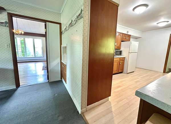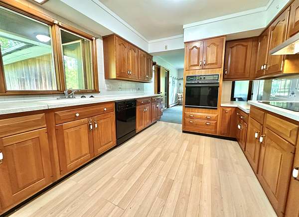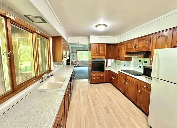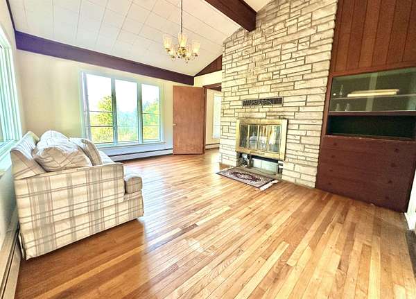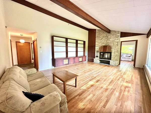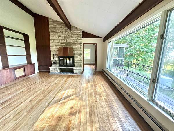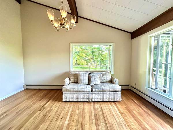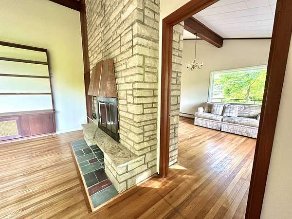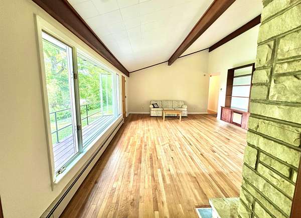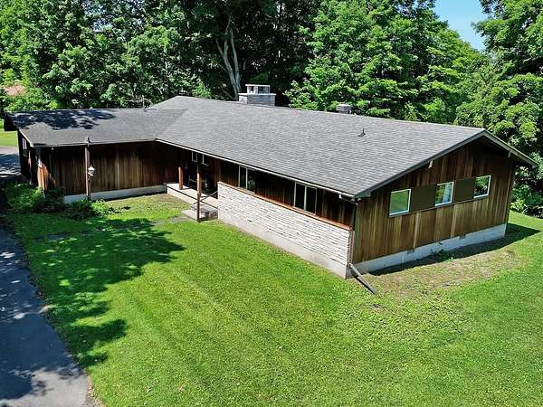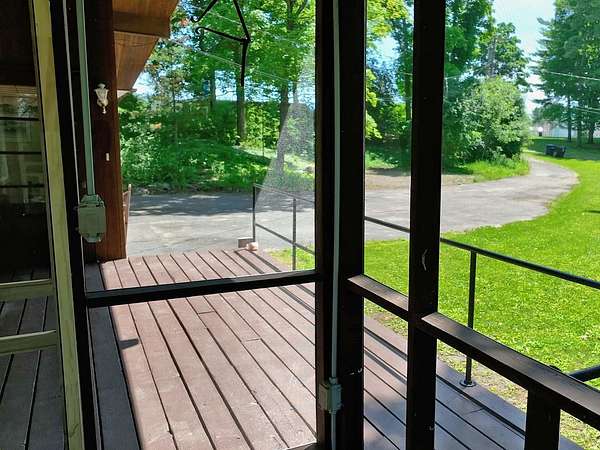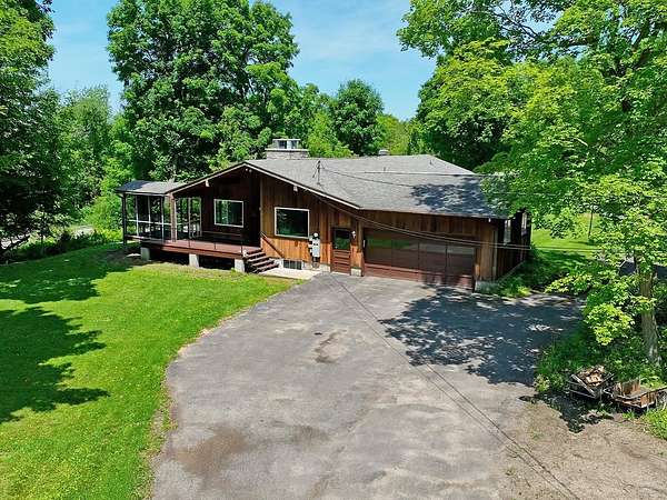 Welcome to 300 Chapman Street, a peaceful retreat located in Morristown, NY, offering picturesque views of the St. Lawrence River. This spacious 4-bedroom 2-bath mid-century modern on 1.7 acres combines the best of both worlds - a secluded country atmosphere yet it is within walking distance of local dining and amenities. Looking to relocate or work remotely? Ideal home office setting with convenient access from Elm Street or Chapman Street, with easy travel via Ogdensburg International Airport or a quick trip across the river to Brockville, Canada. Interior features of the home include hardwood flooring, vaulted ceilings, a double-sided, locally quarried, white sandstone fireplace connecting the living and dining rooms, and slate flooring in the foyer entrance. Sizable kitchen with ample cherry cabinetry and solid surface countertops. Primary bedroom with wall-to-wall closets and dual sinks in the full bath. The exterior features rare California redwood siding - known for durability and longevity (with a host of other benefits), a wraparound deck with screened patio, and a stone wall-lined paved driveway. The expansive grounds offer a tranquil escape with deer and wildlife sightings, with ample room for gardens and outdoor enjoyment. The property includes an attached 2 car garage with workshop area, new propane furnace (2023), hardwired generator, and municipal utilities. Centrally located in the quaint and charming hamlet of Morristown within steps of Chapman Park with pickleball, tennis, basketball courts and the historic windmill overlooking Brockville, Ontario's, cityscape. Walking distance to the St. Lawrence River, K-12 school, public boat launch and marina, museum, hardware store, post office, and more.