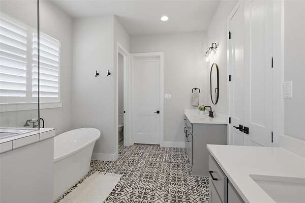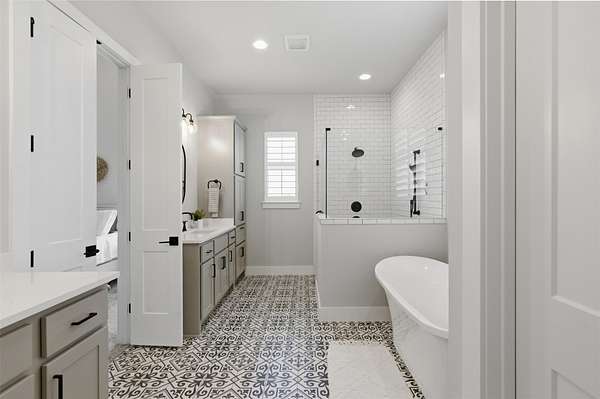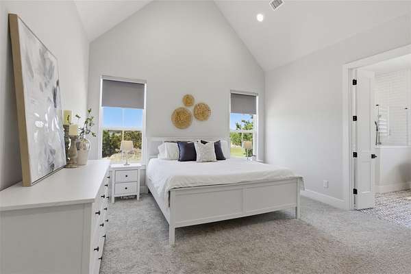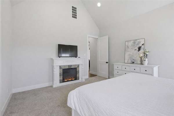 - Beamed Ceilings, Breakfast Bar, Built-In Features, Cathedral Ceiling(s), Ceiling Fan(s), Ceiling-High, Chandelier, Double Vanity, Entrance Foyer, Kitchen Island, No Interior Steps, Open Floorplan, Pantry, Primary Bedroom On Main, Quartz Counters, Recessed Lighting, Soaking Tub, Study/Home Office, Walk-In Closet(s)