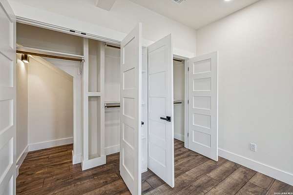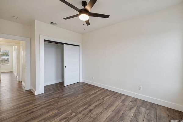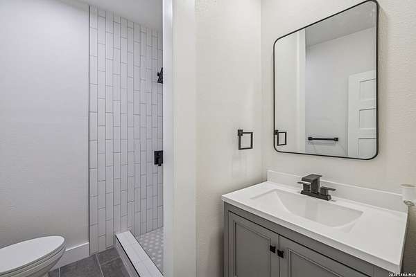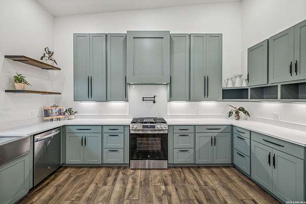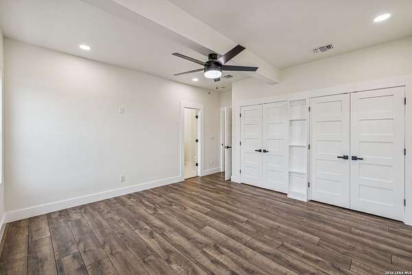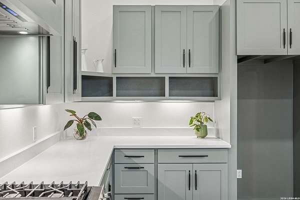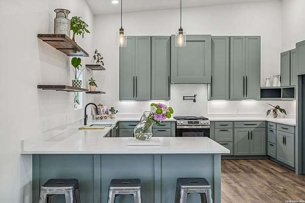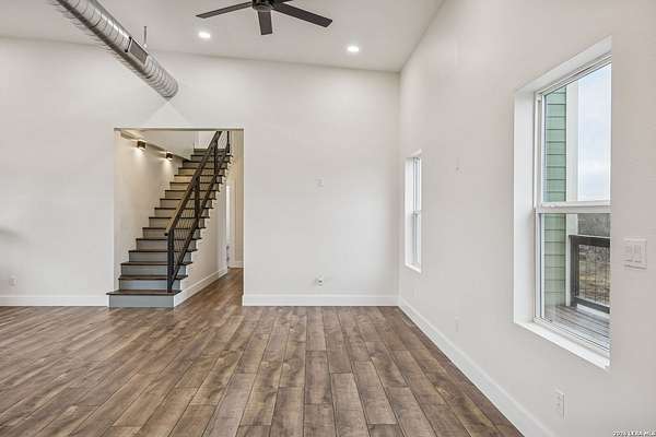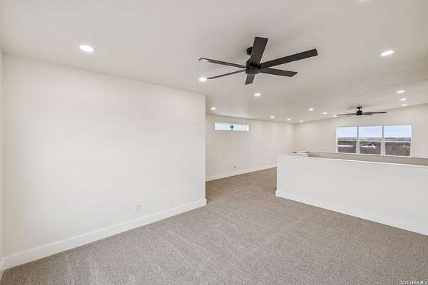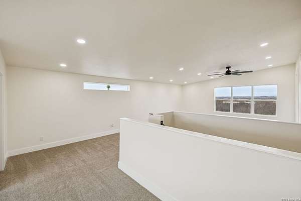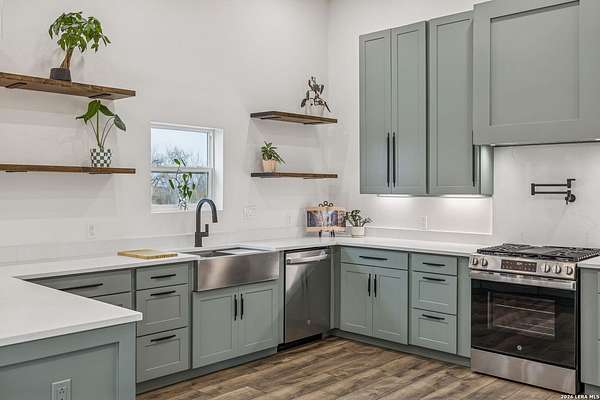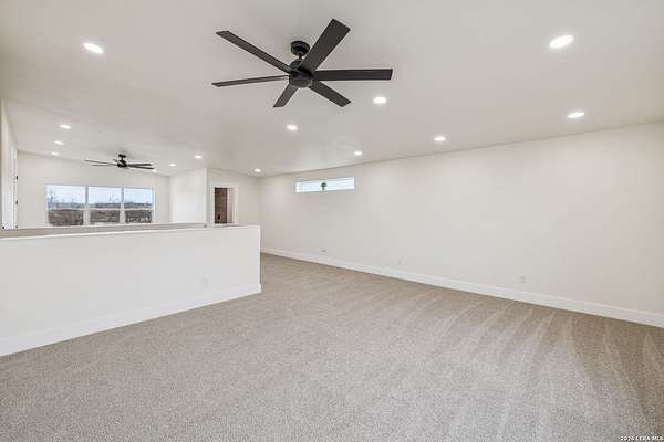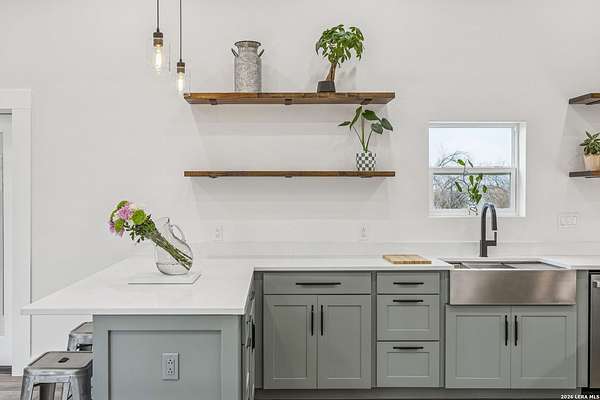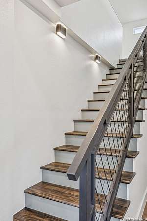 With 5.01 acres to call your own in Castroville's Valley View community, this modern home offers space, privacy, and a slower pace of life, set against open land and wide Texas skies. Step inside to soaring ceilings and an open, light-filled great room that invites you to slow down and settle in. At the center of the home, the kitchen is designed to be used, shared, and lived in, equally suited for quiet mornings or full-house gatherings. Custom cabinetry, expansive countertops, a farmhouse sink, and stainless steel appliances create a space that feels both practical and inviting. A striking steel-and-wood staircase leads to the second level, where you'll find an additional living space with a full bath. This separate area offers flexibility for a game room, home office, or guest retreat. Wood-toned flooring runs throughout the main level, connecting each room with a sense of continuity and comfort. The primary bedroom continues the home's modern aesthetic with thoughtful finishes, including a spa-inspired soaking tub and walk-in shower, perfect for winding down at the end of the day. Outside, the land opens up into something truly special. Wide-open views and mature trees offer both freedom and functionality, while the elevated rear deck provides the perfect place to enjoy peaceful mornings and quiet evenings surrounded by country calm. This home offers a refined take on modern country living, where contemporary design, usable space, and rural tranquility come together in a way that simply feels right.