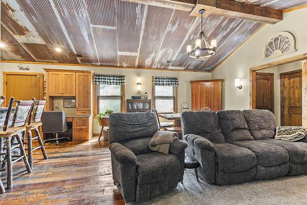 Welcome to 300 Keller Waits Lane - the ultimate live, work, and play property, just 5 minutes from town! Nestled on 15 picturesque acres, this one-of-a-kind property offers two ponds, and unmatched versatility. The main home is bursting with character inside and out, exuding warm country rustic charm. Designed for those who value their workshop space as much as their living space, the home offers as much garage and workshop area as it does house. A massive front bay-originally built for RV storage-features tall ceilings, split units for climate control, and endless potential for your projects, hobbies, or storage needs. Inside, the main level includes a cozy open-concept kitchen/living space, a spacious den/rec room, and a bedroom with full bath. Upstairs, you'll find an additional bedroom, full bath, and a separate living area-ideal for guests or a private retreat. The property also boasts a 30x42 detached workshop with electric and a lean-to, offering even more space to create, build, or store.. This scenic setting, complete with rolling hills, two serene ponds, and privacy all around, is truly a rare find. Don't miss your chance to own this slice of Kentucky paradise!