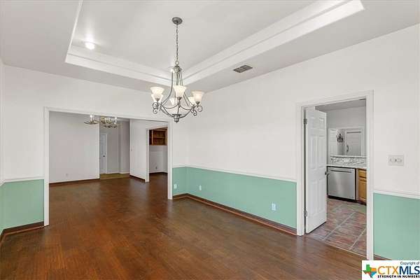 - All Bedrooms Down, Bookcases, Breakfast Area, Breakfast Bar, Ceiling Fans, Central Vacuum, Chandelier, Crown Molding, Dining Area, Double Vanity, Eat In Kitchen, Home Office, Laminate Counters, Main Level Primary, Primary Downstairs, Pull Down Attic Stairs, Separate Formal Dining Room, Separate Shower, Vanity, Walk In Closets, Window Treatments