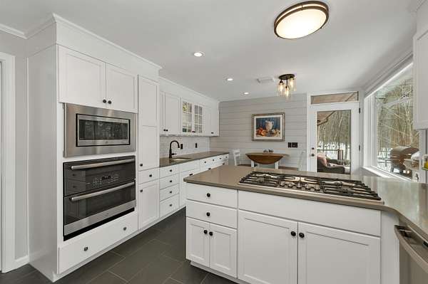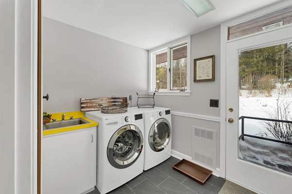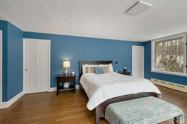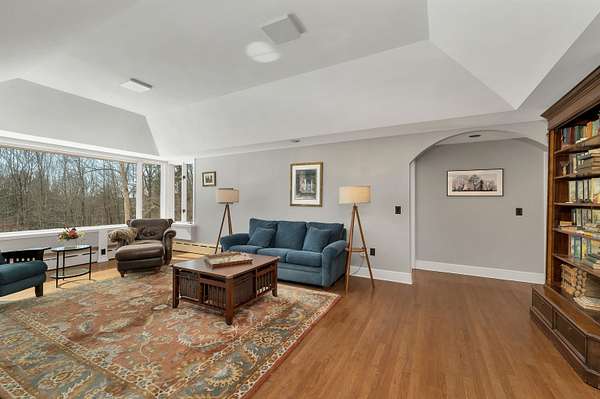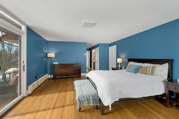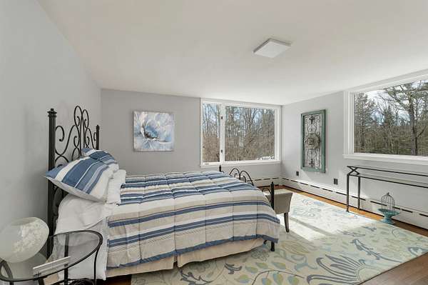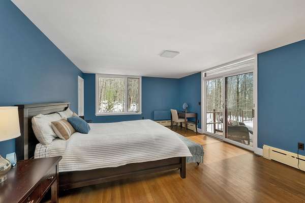 Tucked in the woods on 7.2 private acres, this light-filled contemporary retreat feels like a modern treehouse—offering peace, privacy, and town access to Squam Lake just minutes away. Located in the picturesque town of Sandwich, this carefully maintained home sits well off a quiet paved road, surrounded by natural beauty and a wonderfully peaceful setting. From the moment you walk inside, the home feels bright, open, and welcoming. Expansive windows in nearly every room fill the interior with natural light and create a beautiful connection to the surrounding landscape. Designed with south-facing passive solar elements, the home captures the winter sun beautifully, allowing warmth and light to pour into the living spaces even on the coldest days. At the heart of the home is a slate fireplace that has long been the centerpiece of the house and a favorite gathering place on snowy evenings or when friends and family come together. Custom features include a first-floor primary ensuite, with private deck access, offering the ease of one-level living. The spacious layout flows naturally across three levels, providing excellent flexibility for entertaining, relaxing, or accommodating multi-generational living while still offering quiet spaces to unwind. Each season brings its own charm—from spring daffodils and blooming forsythia to fragrant lilacs that fill the air in early summer. The acreage offers plenty of room to garden, explore, and enjoy nature, and seasonal mountain views appear in the winter months. An added highlight is town access to Squam Lake, including a nearby town beach and boat launch, providing easy access to one of New Hampshire’s most treasured lakes for boating, swimming, and summer recreation. Whether you are searching for a year-round home or a peaceful seasonal retreat, this sun-filled property offers privacy, character, and the the timeless charm of Sandwich living.