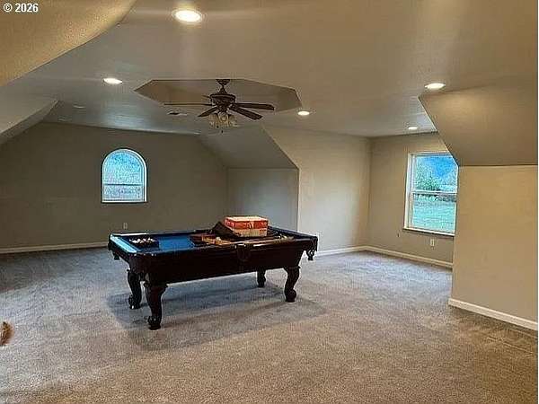 - Ceiling Fan, Hardwood Floors, Laundry, Soaking Tub, Tile Floor, Vaulted Ceiling, Wallto Wall Carpet