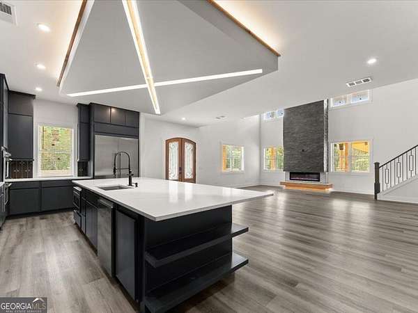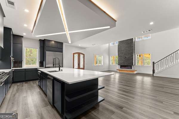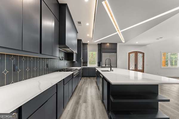 NEW CONSTRUCTION Ultra-Modern Mountain Estate | Smart, Sustainable & Custom-Built Nestled on nearly 6 private wooded acres in Dahlonega's premium mountain enclave, this custom-built 2025 ultra-modern estate epitomizes the luxury mountain lifestyle. With 5 bedrooms, 6 full baths and nearly 10,000 sq ft of high-end living space, every detail reflects refined taste: from the handmade maple cabinetry and Italian appliances in the chef's kitchen, to the cutting-edge smart home infrastructure and EV-ready six-car garage. Step outside to an entertainer's paradise-natural stone waterfalls flow into a koi pond sustained by a 700-ft private well delivering over 1,000 gallons daily, while the fully equipped outdoor kitchen and expansive terraces invite seamless indoor-outdoor living. Surrounded by North Georgia's renowned wine country, this rare residence is just minutes from downtown Dahlonega's historic square, fine dining, boutique shopping, and miles of scenic trails. This is more than a mountain home, it's a modern masterpiece. For the discerning buyer seeking a low-maintenance luxury mountain retreat in one of Georgia's most desirable destinations, this home is ready to deliver. Please contact us to schedule your private tour and experience the lifestyle that awaits.