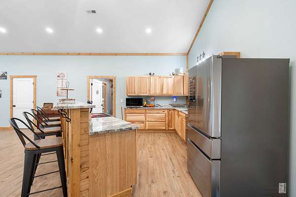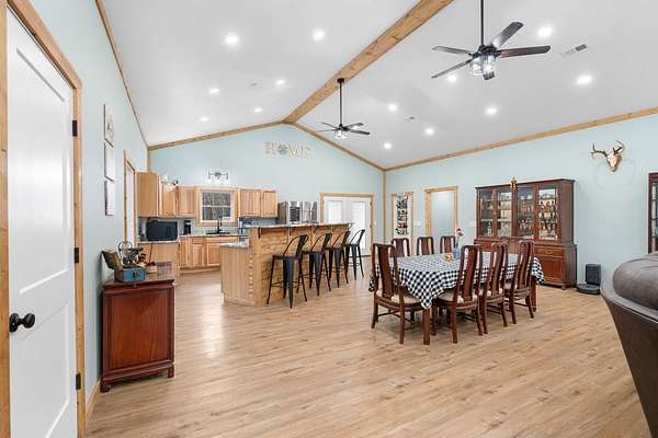 Discover the perfect blend of versatility, space, and privacy with this exceptional barndominium set on 14.71 acres. Offering 2,184 square feet of beautifully designed living space, this property also features an additional 2,142 square feet that is fully heated, cooled, and insulated—giving you endless possibilities. Whether you envision expansive garage space, a workshop, or even additional living quarters, the entire structure is built to be fully livable to suit your needs.