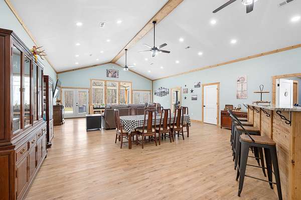 With nearly 15 acres to enjoy, this one-of-a-kind property offers room to expand, create, and truly make it your own—all while enjoying the unique charm and practicality of barndominium living. This property also offers underground utilities, tankless gas water heater, 33 ft above ground pool (new) w/ lighting (poolside furniture is negotiable) 56 inches deep, small shed for storage, chicken coop and chickens (should you want them to stay), wet weather creek, temperature controlled attic, 10 ft ceilings, 8 & 9 feet garage doors, security cameras (8) w/ motion detecting lights and so much more! No city taxes and fiber internet is available. Opportunities like this don't come around often-schedule your private showing today!