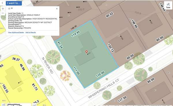 Multifamily development opportunity Zoned R3, MEDIUM DENSITY MF DISTRICT in City of Naperville. R3 allows a 6 unit building subject to ordinance specifications. The frontage on River Road is approximately 152' and 110' on Whispering Hills Court. Per the survey the lot dimensions are 41+111 X 110 X 150 X 114. A townhouse community is adjacent to the site on the north and a cul-de-sac of 6 unit condo buildings adjacent to the east and south. There is currently a single family home on the property.
