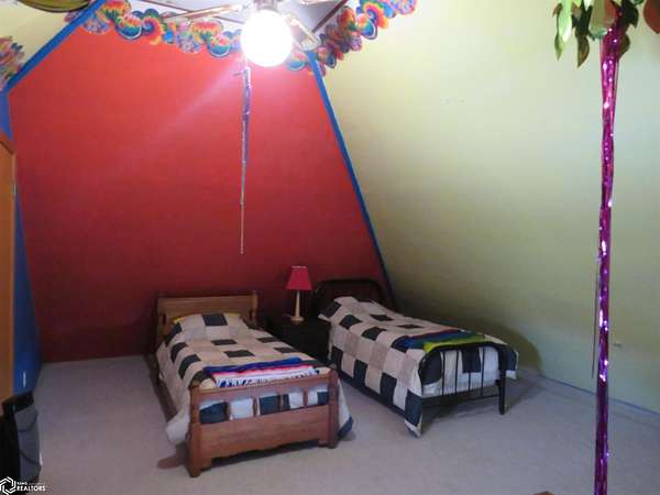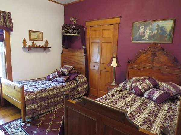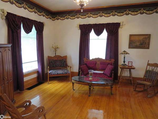 This charming Victorian home with wraparound covered porch, located on the east edge of Pocahontas close to the Pocahontas Golf Course sitting on approximately 6 acres m/l surrounded by beautiful grown evergreens with some outbuildings. This home has a very secluded area for private gatherings outback with a cement patio and has a gas fire pit. On main level is a awesome family room/living room with fireplace perfect for entertaining open to the kitchen, formal dining room and sitting room. Beautiful open staircase that leads upstairs to the 5 bedrooms and then through the master bedroom is a back staircase leading out to the main level family room. 3rd floor attic offers endless possibilities that can be extra living space as a bedroom or playroom. Basement offers family room, bonus room & bath. Backyard it very private and open. This is a ideal location of raising a family. This is more than a home, has city utilities but country living. Schedule your private showing today!
