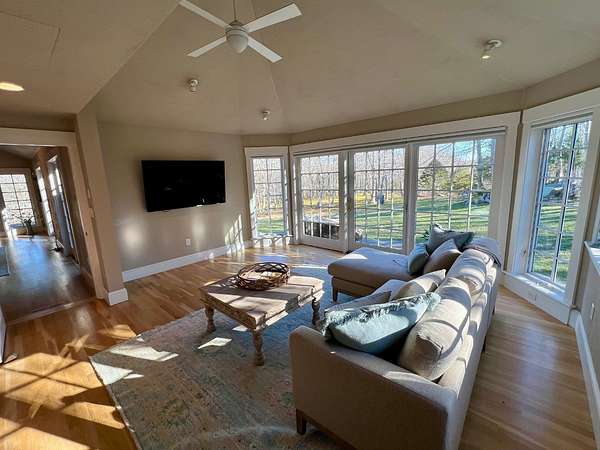 Est $15,081/moWinding tree lined driveway off North Rd brings you to this commanding, custom designed residence built by a top tier island builder. This home is set on over 4 private acres of rolling meadows and big sky views. Main living space is all on one level which includes primary bedroom with en-suite bath, large living area with fireplace, bright sunroom or second living room, custom kitchen and two additional bedrooms with full bath. The finished walk-out lower level is an additional 1700 square feet offering a studio suite with full bathroom and separate entrance. Two outbuildings consist of a second garage and an unfinished cottage style building that has amazing potential for detached bedroom or guest suite.