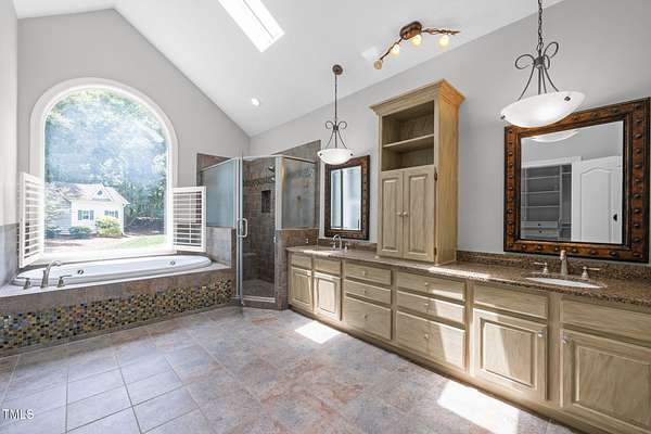 - Apartment/Suite, Bookcases, Built-In Features, Cathedral Ceiling(s), Ceiling Fan(s), Central Vacuum, Chandelier, Crown Molding, Dining L, Double Vanity, Dressing Room, Dual Closets, Eat-In Kitchen, Entrance Foyer, Granite Counters, High Ceilings, In-Law Floorplan, Kitchen Island, Open Floorplan, Pantry, Primary Downstairs, Radon Mitigation, Recessed Lighting, Second Primary Bedroom, Separate Shower, Smooth Ceilings, Soaking Tub, Stone Counters, Walk-In Closet(s), Walk-In Shower, Water Closet, Whirlpool Tub