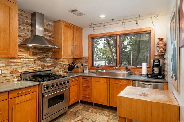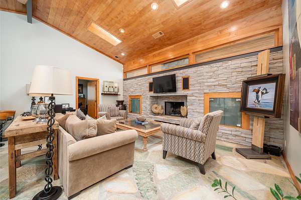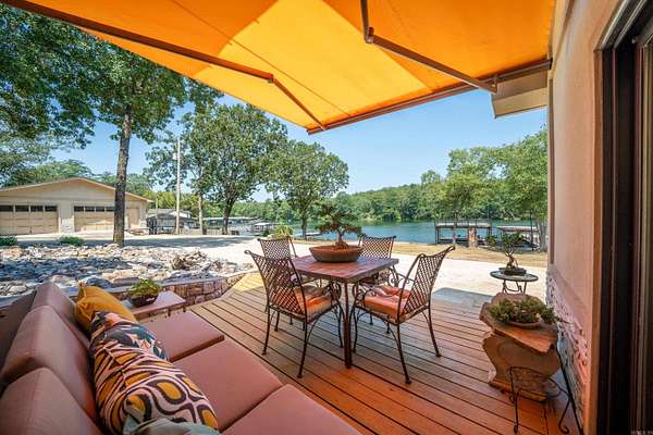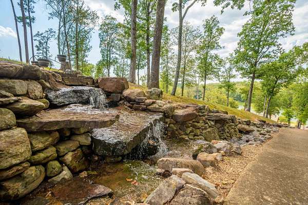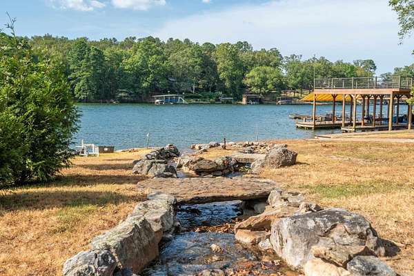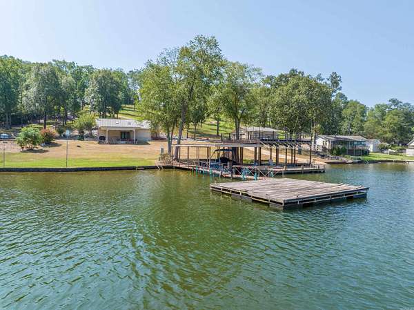 This exceptional lakefront property on the highly sought-after south shore of Lake Hamilton offers a rare combination of natural beauty,development potential, and luxurious amenities. Spanning approximately 4.25 acres with 226 feet of pristine shoreline, the land featuresmultiple building sites both on and off the water, making it ideal for a private compound or a boutique residential development. A naturalwaterfall cascades from the top of the property down to the lake, flowing past exposed rock formations embedded with authenticdinosaur fossils--an extraordinary and unique natural element rarely found anywhere. At the water's edge, the property is fully equippedfor lakefront living with three covered boat slips, a private boat launch, a large swim platform, and two party decks including an expansiveentertaining area atop one of the docks. The estate is gated for privacy and includes the Pinehill House, a well-appointed residencefeaturing Viking and Sub-Zero appliances, Madrid quartz flooring, a recently updated roof (2023), new skylights and gutters, and a two-car garage with workshop space. A newer high-efficiency AC system ensures year-round comfort. Whether you're looking for a