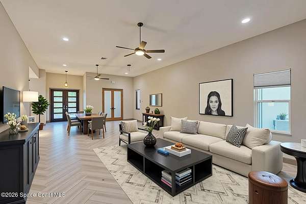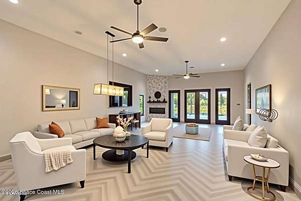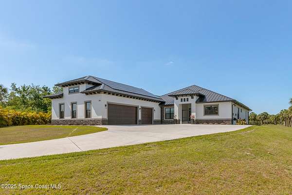 STUNNING PERFECTION best describes this GORGEOUS HOME in Deer Run, an Exclusive Equestrian Community. Experience the perfect blend of luxury, privacy, and convenience with this meticulously crafted, custom-built home. Set on 2.68 acres at the end of a tranquil cul-de-sac, this 3-Bed, 3-Bath + Office offers unparalleled privacy. Minutes from I-95 and the new Publix shopping center, this home delivers the best of both worlds-seclusion and accessibility. Spanning 3529 sf, the open concept design is modern luxury. Elegant quartz countertops and backsplashes complement the custom herringbone tile flooring, while the bedrooms and the bonus room feature rich white oak look LVP flooring. The home boasts LED lighting and modern neutral designs throughout. 12-foot ceilings make for an expansive Great Room and the electric fireplace adds ambiance and warmth. This energy-efficient home features a Metal Roof, impact windows and doors and owned 22KW solar system for $27 electric bills monthly!