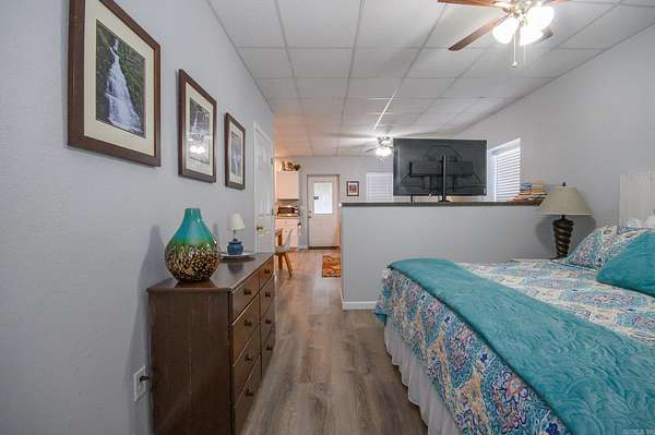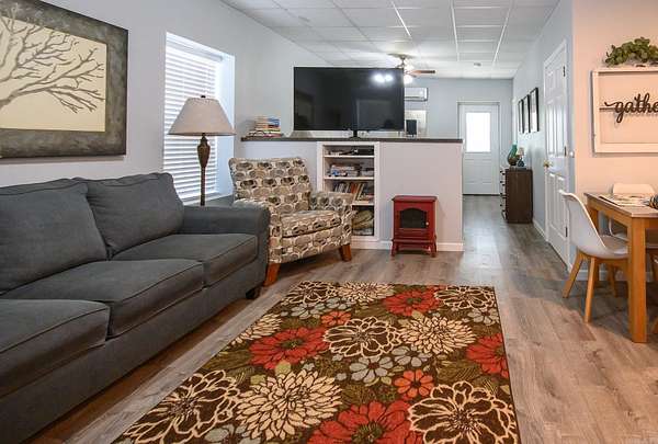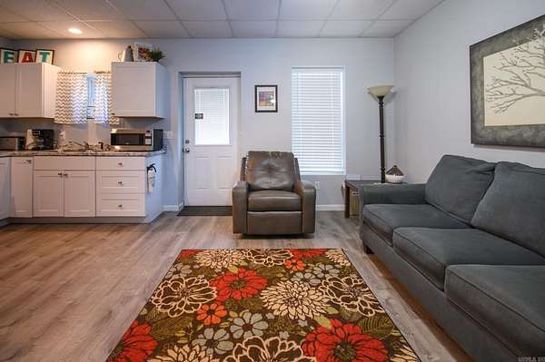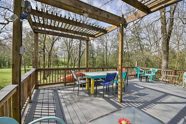 This 3-acre creek side property is a fully furnished, turnkey short-term rental with two separate suites, offering a fantastic opportunity for both investment and enjoyment. The first unit is a spacious studio with a king-size bed, a cozy living area, eat-in kitchen, full bathroom, and shared utility room access. The second unit is a one-bedroom, one-bath, separate living room, eat-in kitchen, private back porch, and also shares the utility room. Outdoors, enjoy a large back patio area with a pergola, a fire pit for relaxing evenings, and a storage shed for added convenience. A highlight of the property is the year-round creek - perfect for peaceful moments in nature just steps away. Additionally, the property has a 30-amp RV hookup and offers a perfect spot at the front of the property to build your dream home, allowing you to create your perfect space while generating income from the existing rentals. Included with the sale are all furnishings, both indoor and outdoor, along with kayaks and patio furniture--everything needed to start hosting guests or enjoying the space yourself from day one. Please see agent remarks for showing instructions.
