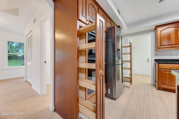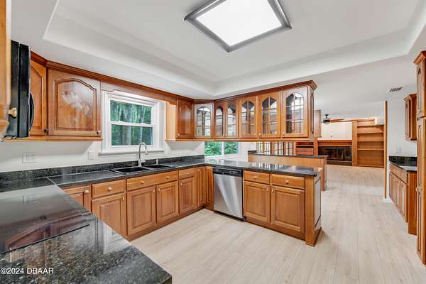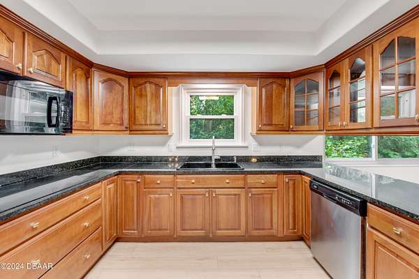PRICE DROP on this Wonderful custom build 4bed/3.5 bath home in Ormond Beach situated high on the bluff overlooking almost 3 acres backing to the Tomoka River in the desirable Tomoka Oaks subdivision! New features include all new LVP flooring on the main level, New Roof & New windows! Unique floorplan allows for formal dining & living & huge family room open to eat in kitchen. Fireplace and custom built-ins are the focal point of the family room w/french doors leading to outside covered lanai. Kitchen features-granite counters, wood cabinetry, pullouts/spice racks, glass fronts, coffee bar, wetbar & plenty of storage. Upstairs features 2 ensuite bedrooms & 2 guest bedrooms. Primary suite is fabulous w/soaring ceilings, hardwood floors, fireplace, private balcony, and huge custom closet and even a private 3rd floor office/gym. Primary bathroom dual vanities, large soaking tub, walk in shower & private water closet. Secondary ensuite bedroom is perfect for guests w/private balcony. Guest bedrooms share a jack & jill bath and have all new carpeting. Exterior features-a large covered lanai perfect for entertaining outdoors and enjoying the wooded privacy of the property. 2 Car side entry garage w/plenty of extra parking -concrete pad for boat/rv or utility trailer. Inside laundry. Plenty of room to roam in this home! Great separation of space, loaded with storage and ready to move in! Backing to super private lush preserve which leads to the Tomoka River where with proper permitting it is possible to build a walkway and dock to enjoy the river. There is also room for pool or backyard putting green or deck for entertaining. Tomoka Oaks is located in the heart of Ormond Beach and has a voluntary HOA with no HOA restrictions other than the city of Ormond Beach restrictions. Close proximity to parks, recreation, shopping, Publix and several eateries. Just minutes to the beach,PICTONA-Pickleball, Outlet mall, highways, medical, airport and racetrack. Some photos have been virtually staged with furnishings.