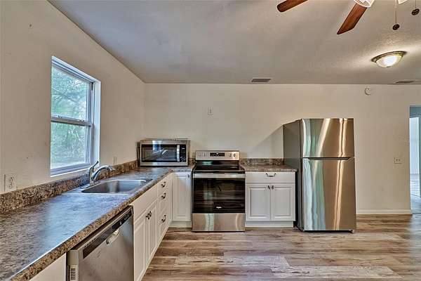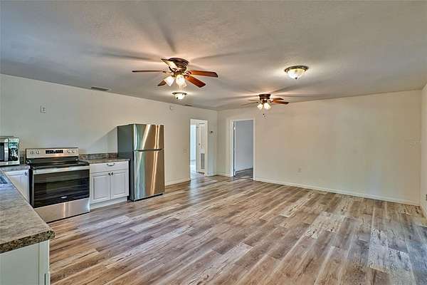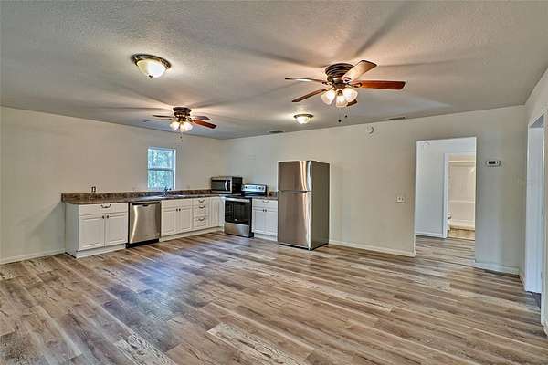Discover your dream retreat in beautiful Bell, Florida! This completely renovated 3-bedroom, 2-bathroom home sits on nearly 8 acres, offering privacy, space, and modern comforts. With a brand-new roof, HVAC system, well, septic tank, and drain field, as well as fully renovated interior with luxury vinyl planking throughout, new kitchen appliances, and lovely renovated bathrooms, this home is truly move-in ready.