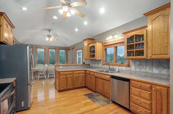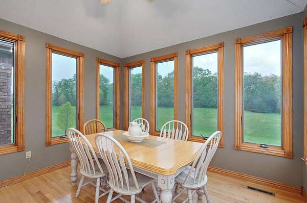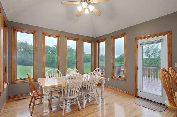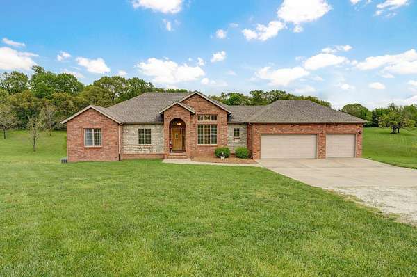 Enjoy peaceful country living just minutes from Springfield in this beautifully maintained all-brick home with stone accents, located in the desirable Hidden Springs neighborhood. Set on 4.38 acres, this spacious 5-bedroom, 3-bathroom home offers 4,162 sq ft of well-designed living space with room to relax, entertain, and grow.Key Features:- Built in 2004 with high-quality construction- All-brick exterior with stone accents- Eat-in kitchen with oak cabinetry & stainless-steel appliances- Formal dining room & vaulted ceilings- Anderson windows & gas fireplace in living room- Master suite with jetted tub, walk-in shower, and dual vanityLower-Level Highlights:- Finished walkout basement with 9' walls- Wood-burning fireplace, wet bar, and 2 additional bedrooms- Full bath, large storage room, and storm shelter under front porch (6x6 concrete)- John Deere room with dedicated HVACUpgrades & Systems:- New roof (installed Sept 2024) with transferable warranty- Pre-wired for home theater & alarm system- Surround sound in 5 zones: living room, master, basement, garage, and deck- Dual water heaters (gas & electric)- Water softener system- 90+ efficiency HVAC- Very well insulated for energy savingsExterior & Lot:- Partially covered back deck with picturesque views- Room on property for future workshop or outbuilding- Quiet, family-friendly neighborhood- Quick access to Springfield amenitiesA new coat of paint will come a long way to make this home feel updated and new. They dont build home like this any more!