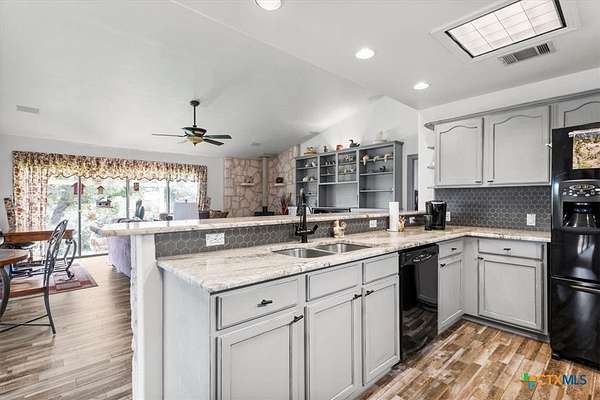 Incredible Price Reduction! Where country meets comfort. This spacious 3-bedroom, 2.5-bath single-family home features an open kitchen ideal for entertaining and a layout designed for both comfort and functionality. The home offers two living areas, a wood-burning stove, split bedroom plan, and a fabulous utility room. The wood burning stove was never used by the current owner so it is ready to be investigated and then enjoyed by the new owner this upcoming winter. The primary suite includes a private screened porch with a hot tub, a walk-in closet, Jacuzzi tub, and a large shower. The vanity in the primary bathroom shows only one sink, but lucky for you, if you choose; it is already plumbed for two sinks. Additional highlights include a separate guest house with living areas, a kitchen, and a spacious bathroom-perfect for Airbnb, guest overflow, multi-generational living, office, or rental income. The guest home square footage is NOT included in the above square footage. The guest home is an additional 462 square feet. The property also features a storage building and expansive acreage suitable for gardening, outdoor activities, or enjoying serene Texas Hill Country surroundings. Located just minutes from town, this property provides a peaceful setting with a covered back porch overlooking beautiful Texas skies, wildlife, and nature. Whether you're watching the sunset from your porch or entertaining guests, 300 Summit Ridge in Burnet, Texas, offers a rare blend of convenience, tranquility, and versatility. Don't miss your chance to own this amazing retreat-schedule your private tour today!