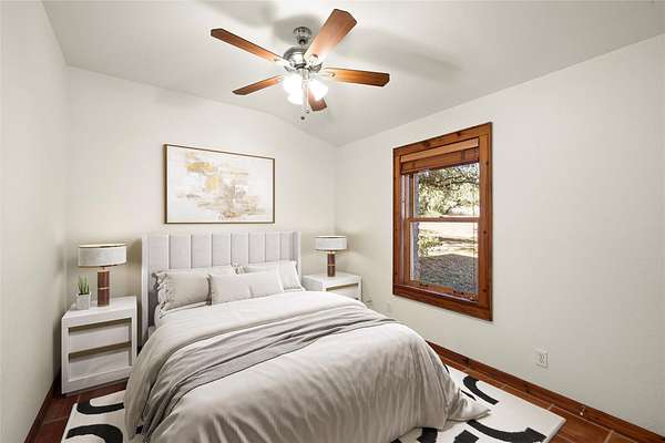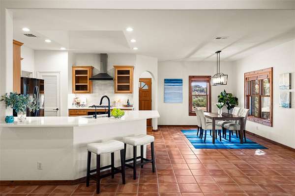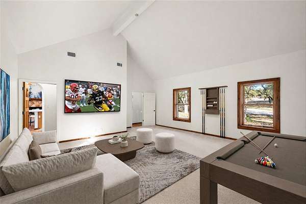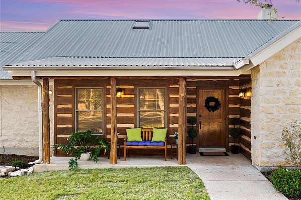 Enjoy sweeping Hill Country sunsets from this private, west-facing retreat on Sundown Ridge. Situated on a secluded 5.09-acre lot with approximately 40 feet of elevation change, the property was selected for its long-range views, mature oak trees, and dramatic limestone outcroppings. Native wildlife, including free-roaming deer, enhances the peaceful, natural setting. Designed for both privacy and flexibility, the property offers an Austin address, low Hays County tax rate, efficient utilities, and zoned to exemplary Dripping Springs ISD. With ample acreage, there is room to add a pool, guest house, additional residence, horses, or explore short-term rental opportunities. Outdoor living is highlighted by a 540-square-foot covered back porch with rustic timber posts, limestone steps, and a concrete floor. Beyond the outer edge of the backyard, the land drops an additional 20 feet, perfectly framing the sunset views. The home features classic Hill Country architecture with a log-style front porch, limestone accents, and an R-panel screw-down metal roof. Built with energy-efficient structural insulated Panels (10" roof panels and 6" walls), the home was awarded "Superior Energy Efficiency" by PEC when it was built. Inside, the open-concept layout connects the living, dining, kitchen, and office areas, accented by terra-cotta style tile floors, vaulted ceilings, exposed beams, skylights, and a stone fireplace. Long-leaf pine trim adds warmth throughout. The kitchen was renovated in 2023 with quartz countertops, subway tile, and stainless steel appliances, and the HVAC was replaced the same year. The vaulted primary suite features French doors, a soaking tub, glass shower, dual vanities, and a skylight. Two secondary bedrooms share a stylish bath, and a large 572-square-foot recreation or game room with a half bath completes the home. This is one you don't want to miss - a rare Hill Country retreat offering privacy, versatility, and convenience.